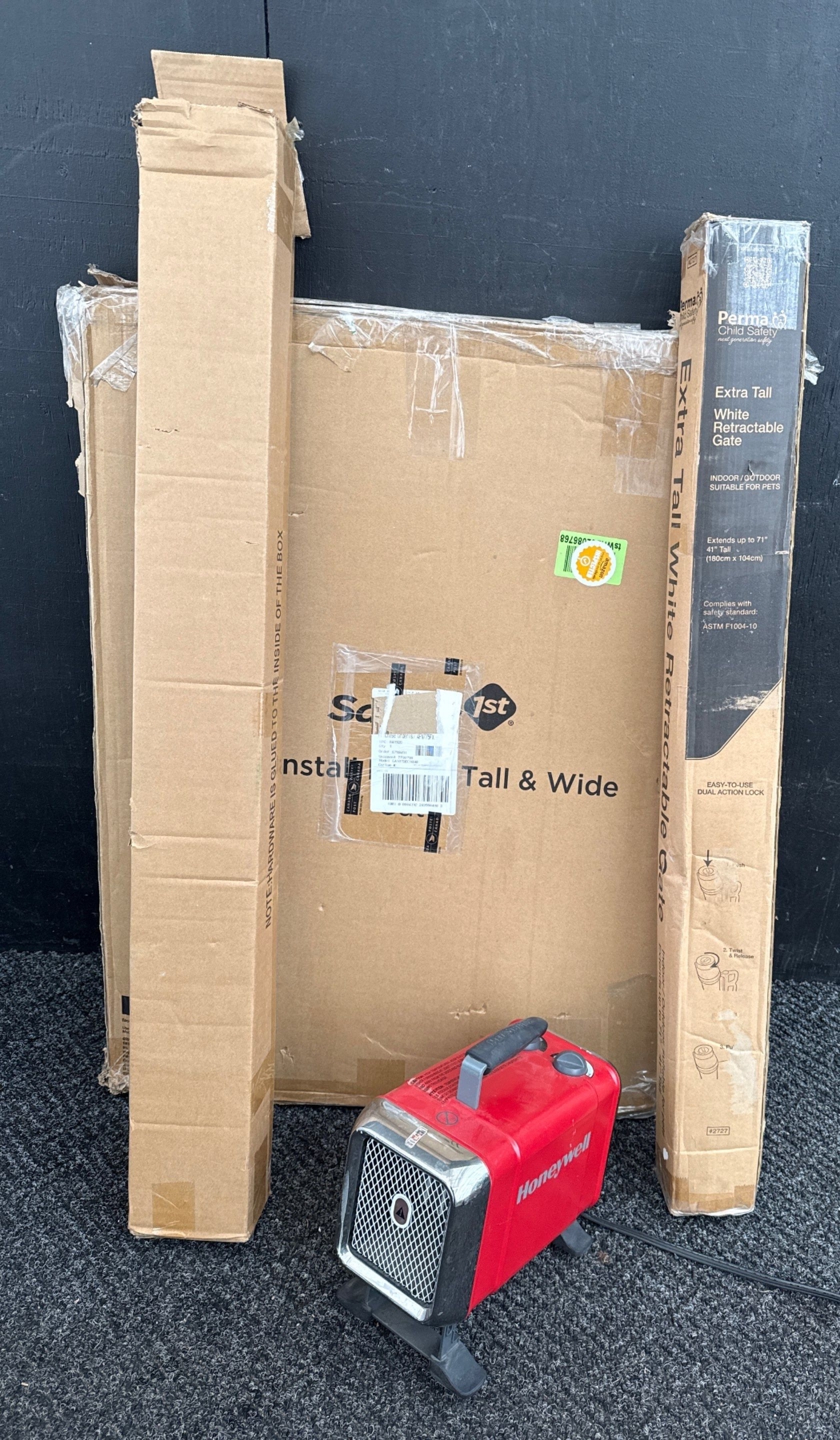Lot 178 Honeywell Portable Heater New Tall & Wide Boundry Gate New Curtain Rod & More