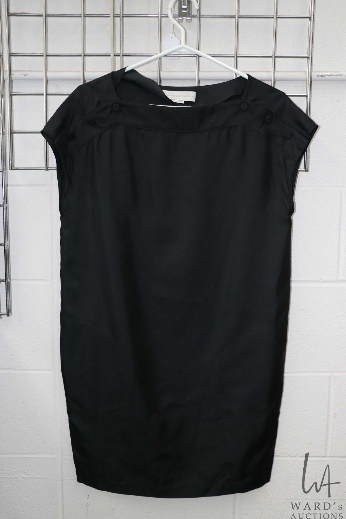 Vintage Stella McCartney black silk dress with triple button shoulder closure and pockets, appears to be size small Note: buyers must satisfy themselves as to authenticity. Feel free to contact auction house regarding images that you require that may have been overlooked during original cataloguing and photography