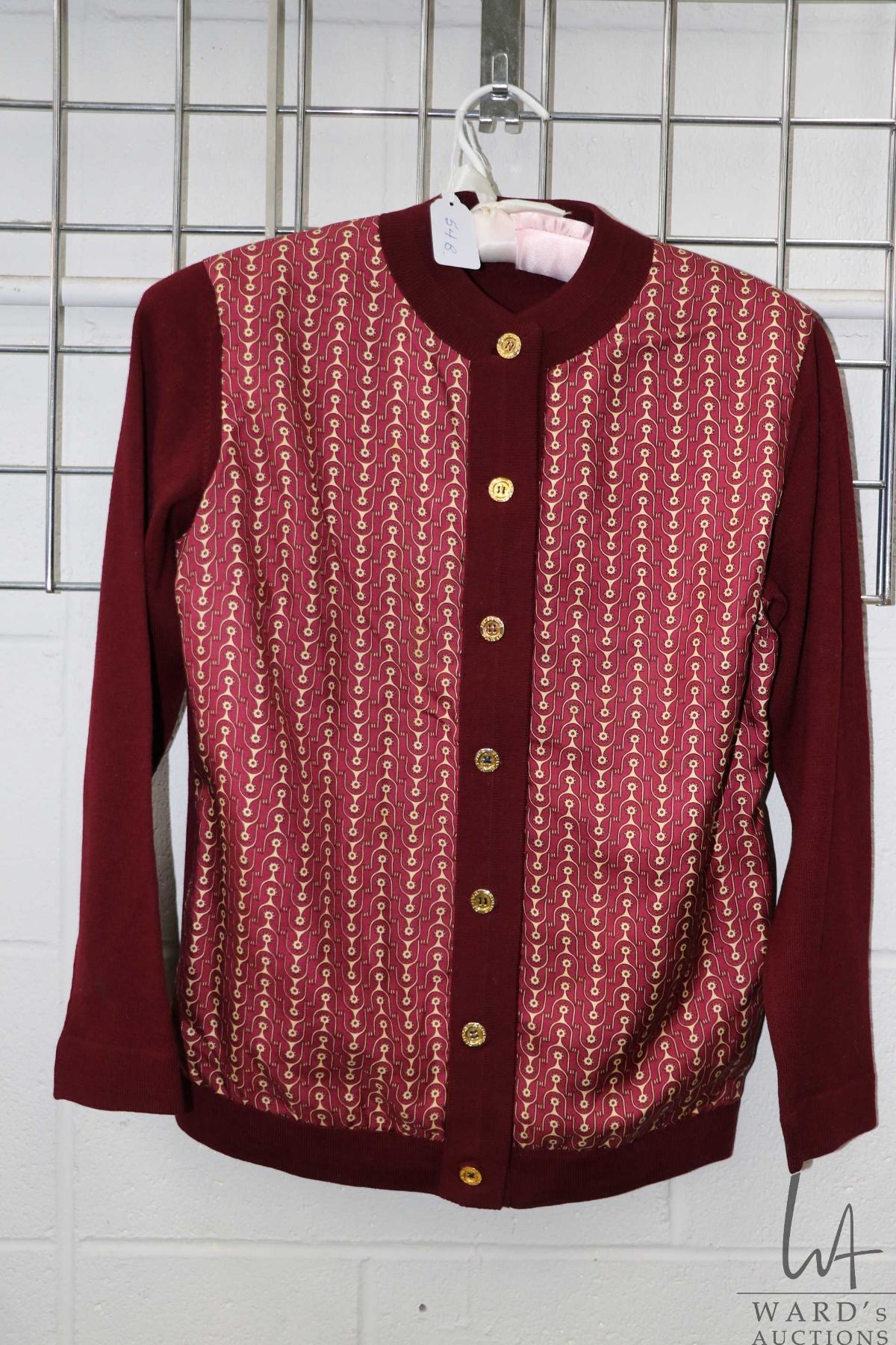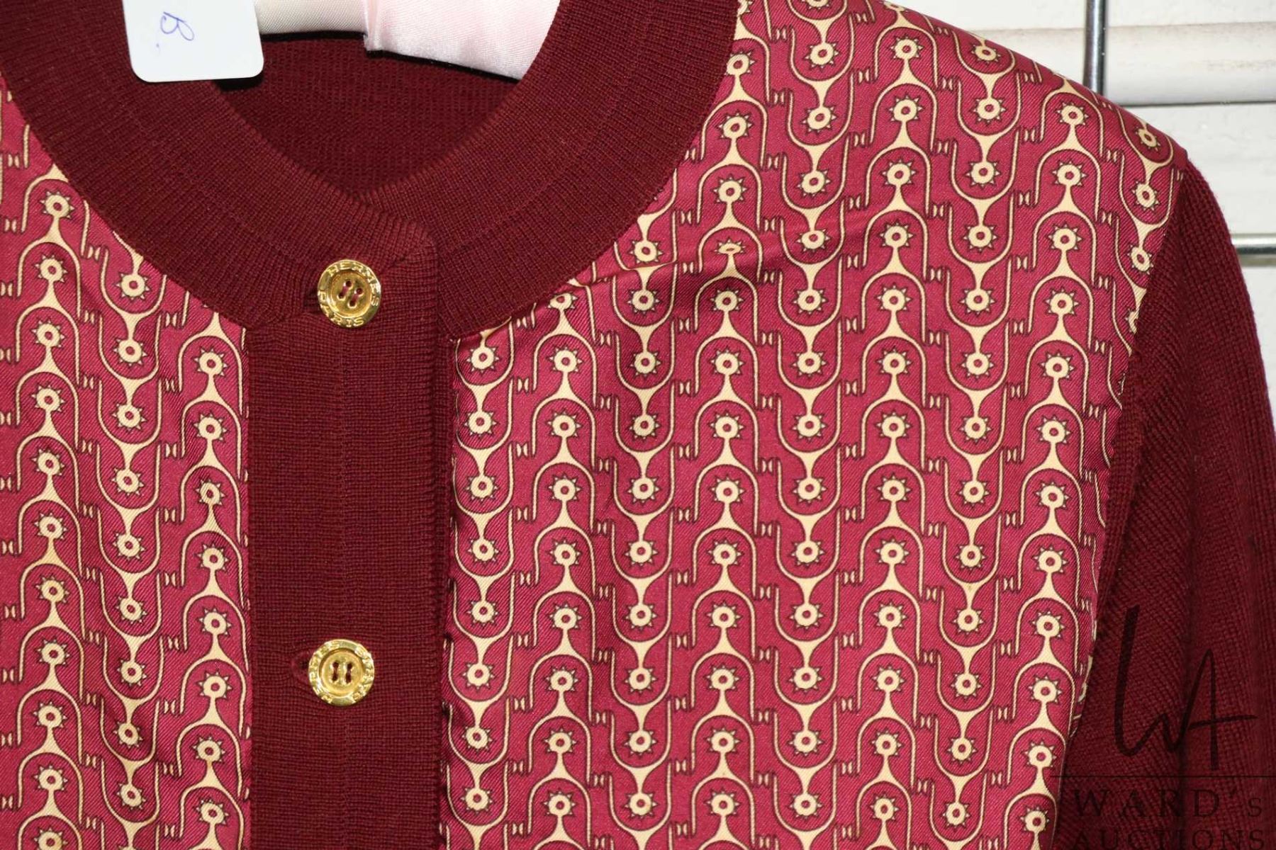 Lot 54b Vintage Hermes wool and stirrup printed silk cardigan, marked size 42 Note: buyers must satisfy th