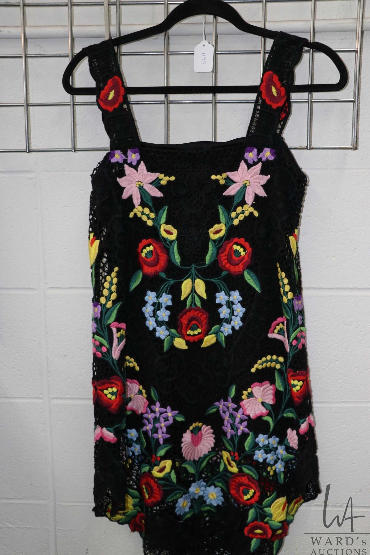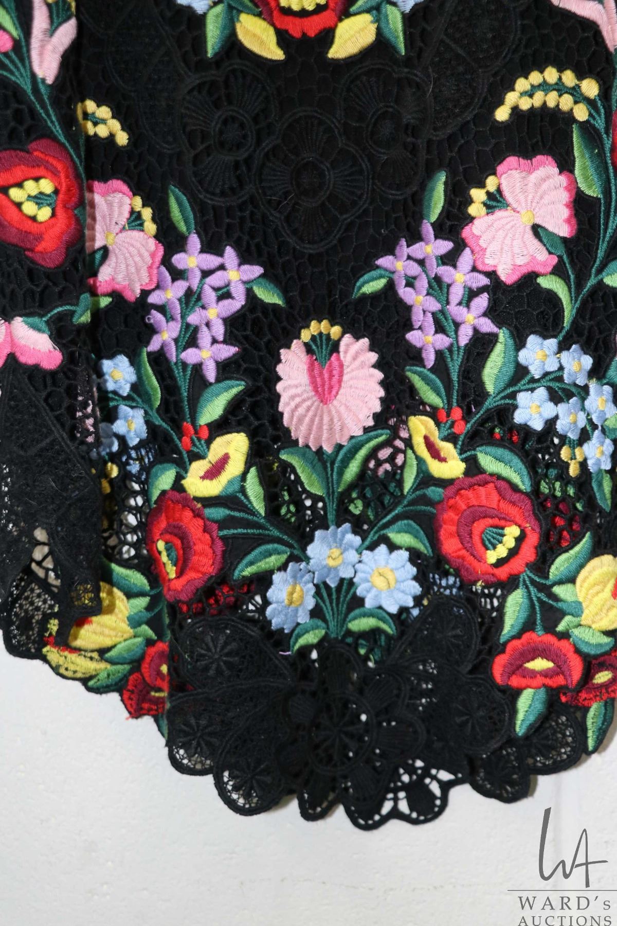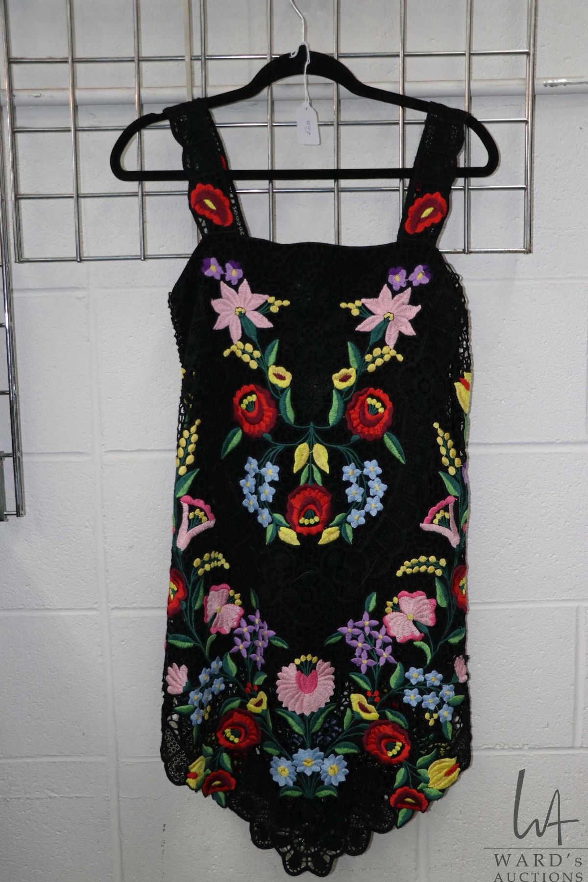 Lot 56a Vintage Dolce and Gabbana embroidered lace mini dress with colourful floral design and scalloped hem