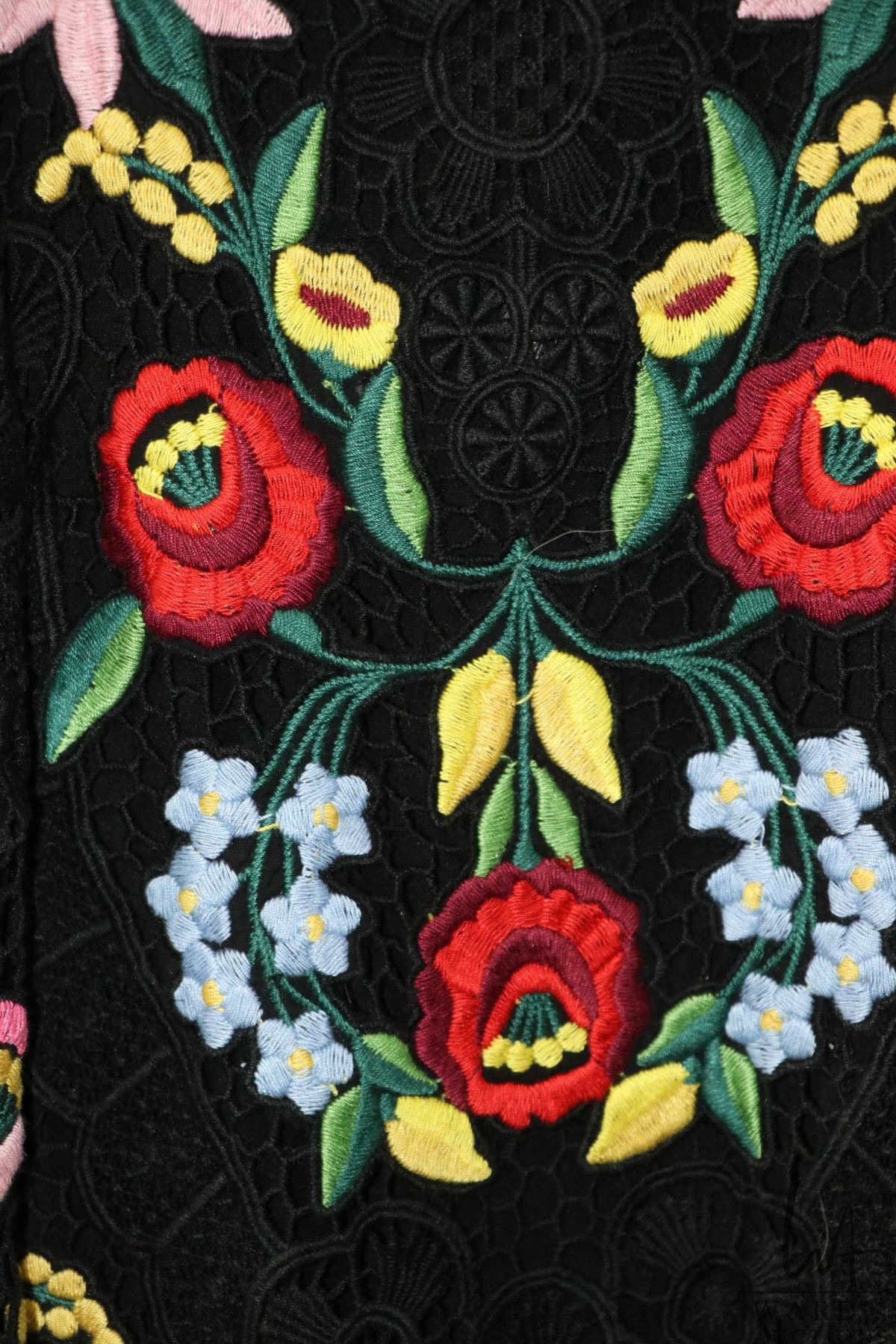 Vintage Dolce and Gabbana embroidered lace mini dress with colourful floral design and scalloped hemline, 100% cotton with black silk lining, size 38, US size XS Note: buyers must satisfy themselves as to authenticity. Feel free to contact auction house regarding images that you require that may have been overlooked during original cataloguing and photography