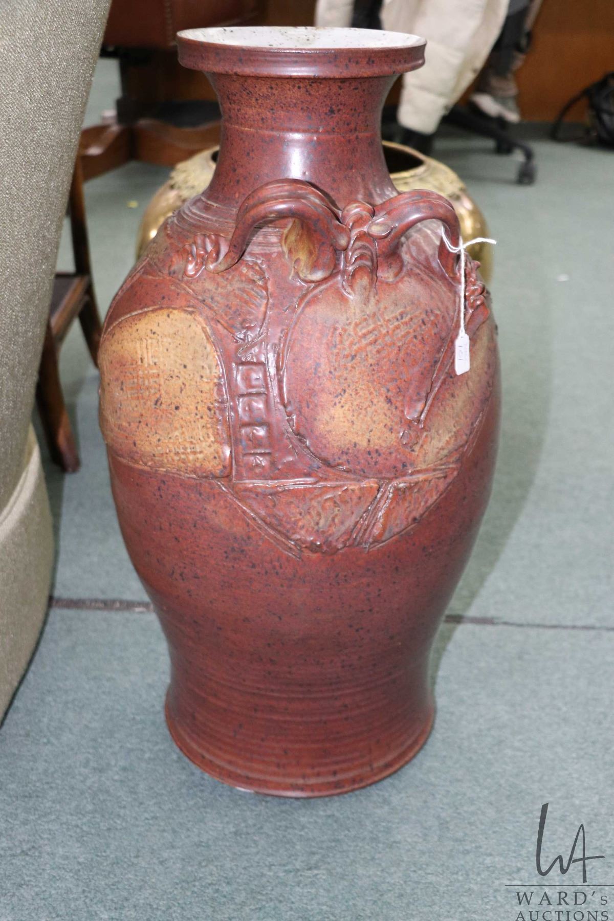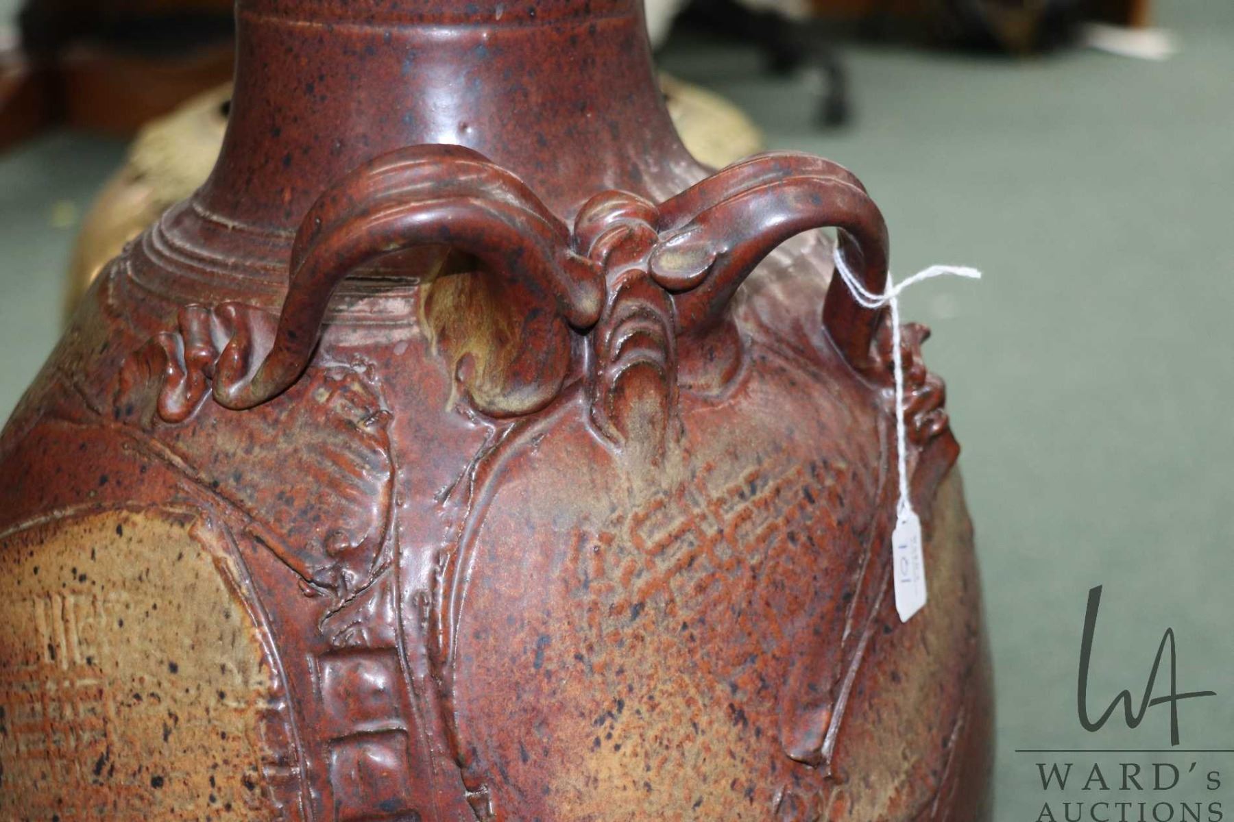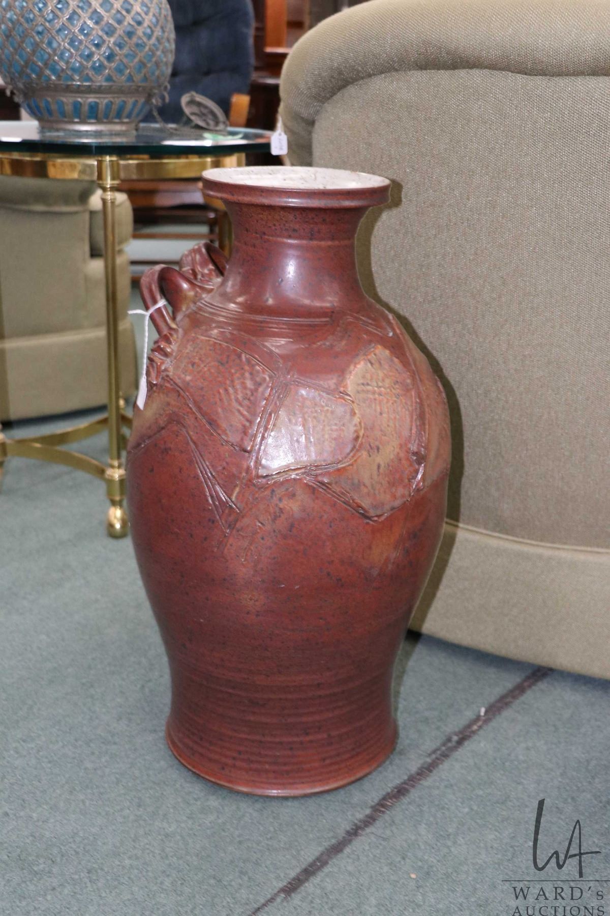 Lot 101 Large artisan made glazed pottery floor vase, 24" in height