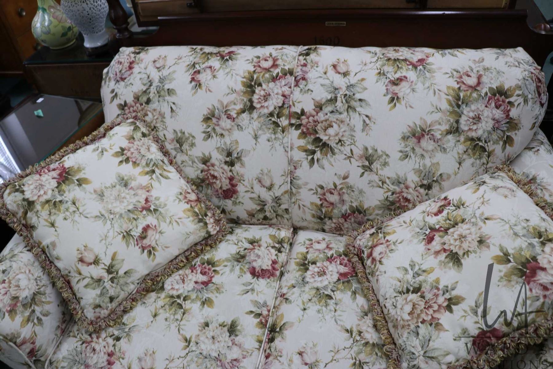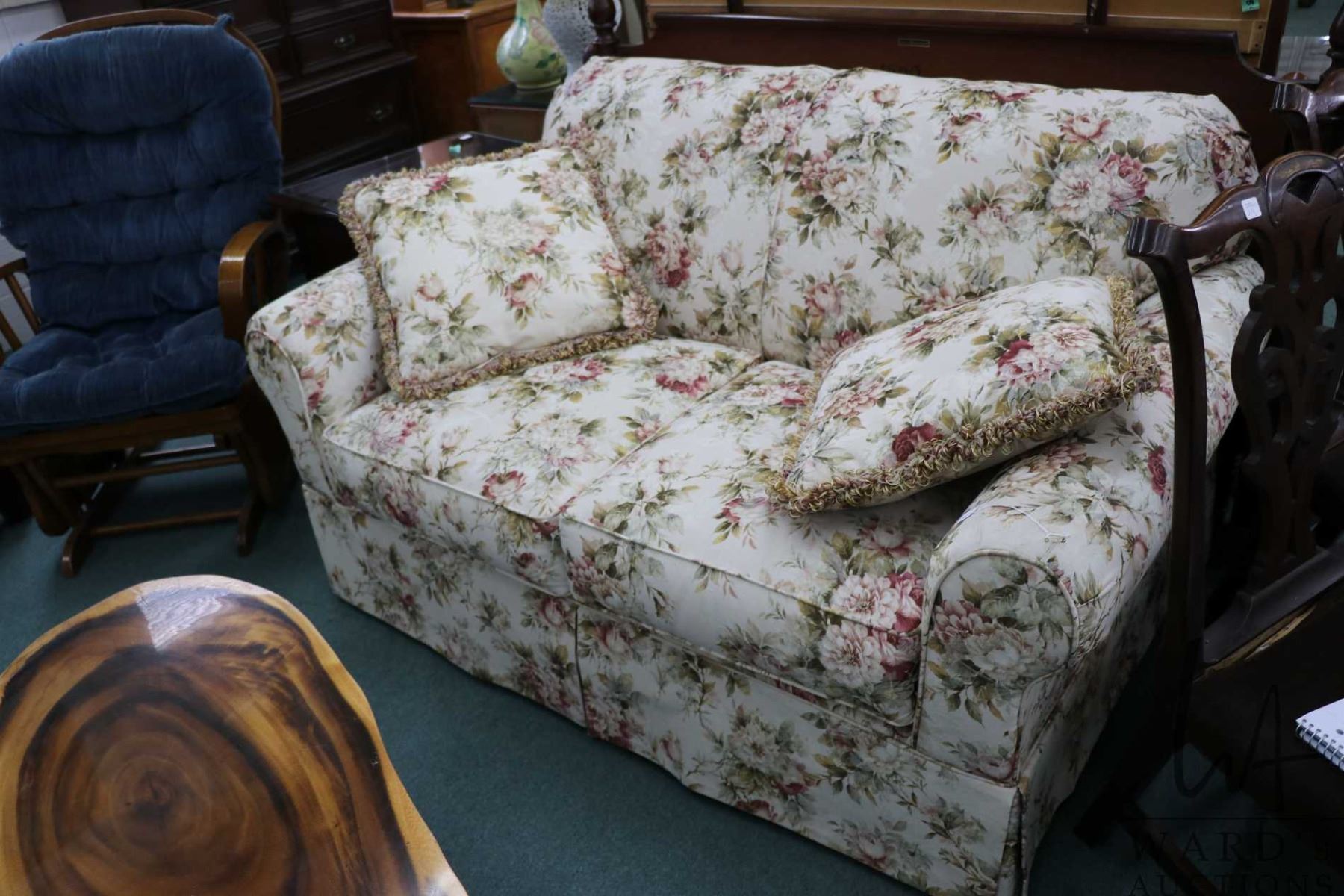 Lot 209a Ashley Home Furniture- Cora Rose loveseat with matching fringed cushions, 58" in width