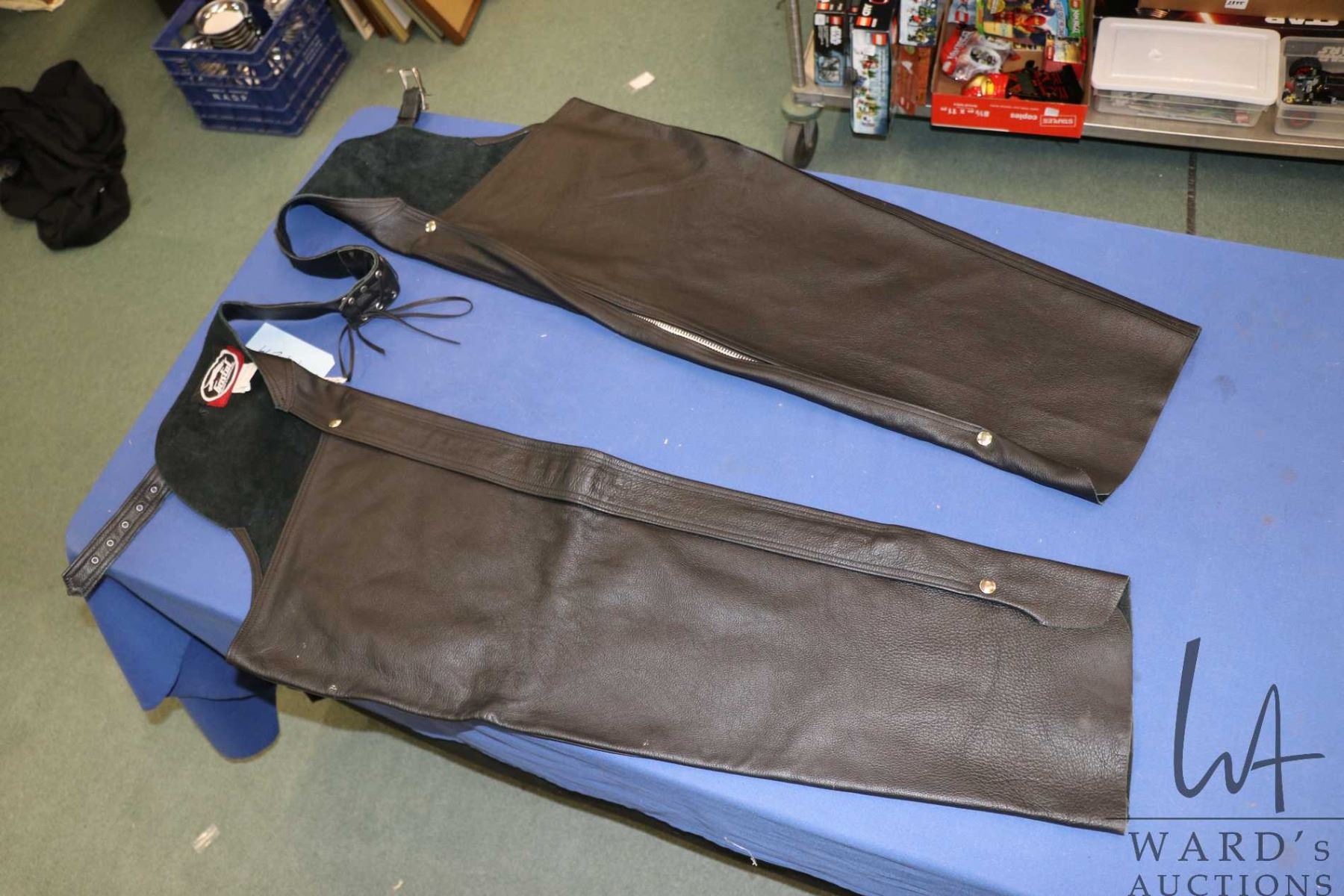 Lot 442a Pair of black leather riding chaps made by Bristol size XL, used very little, if at all