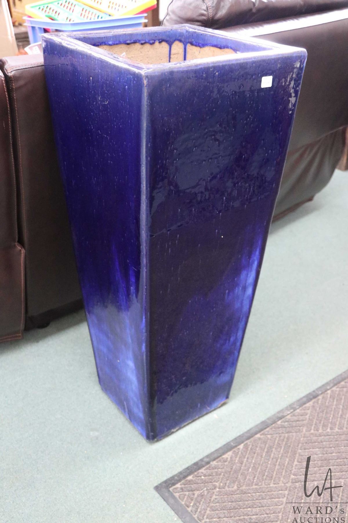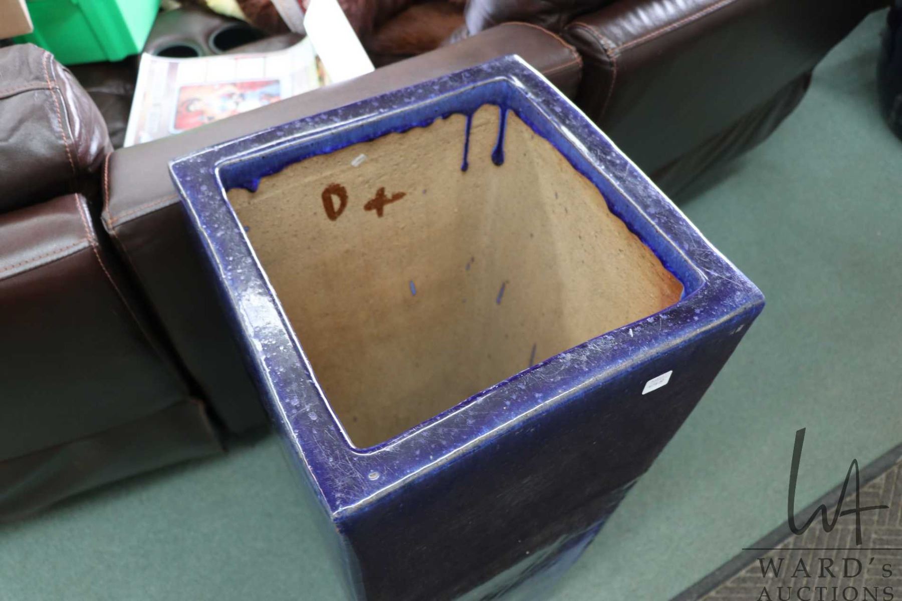 Lot 478a Tall blue glazed planter, 36" H X 15" square