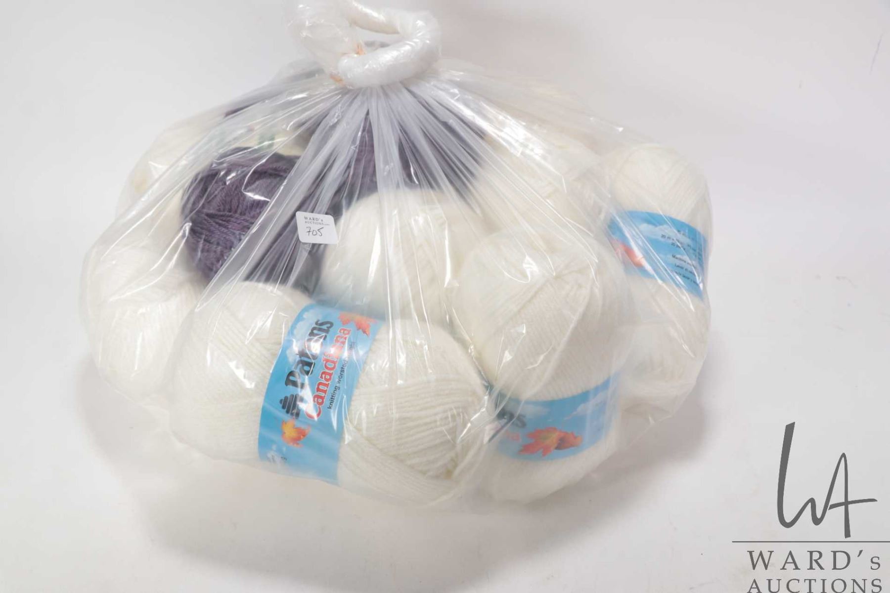 Lot 705 Ten balls of Patons Canadiana Winterwhite kniting worsted weight wool, two balls of Red Heart recycl