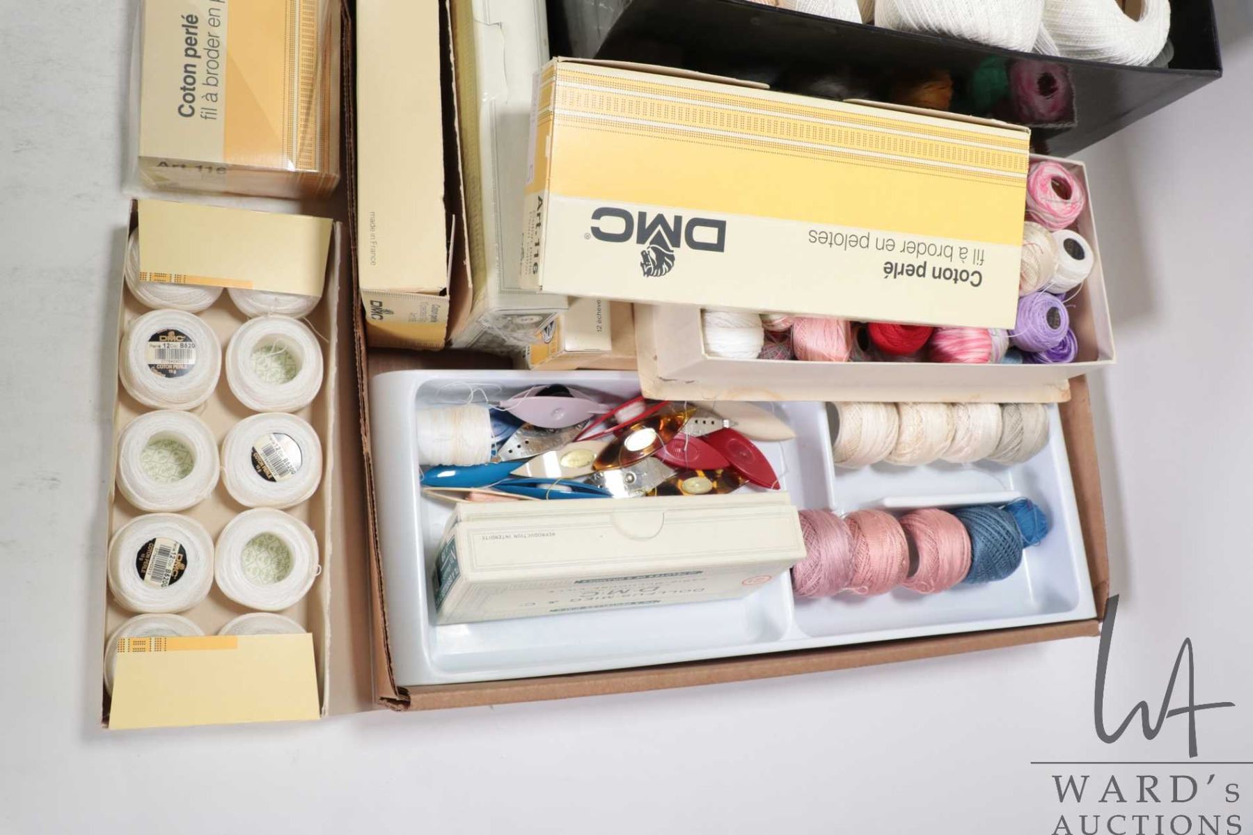 Lot 711 Large selection of lace making supplies including DMC embroidery cotton plus selection of lace makin