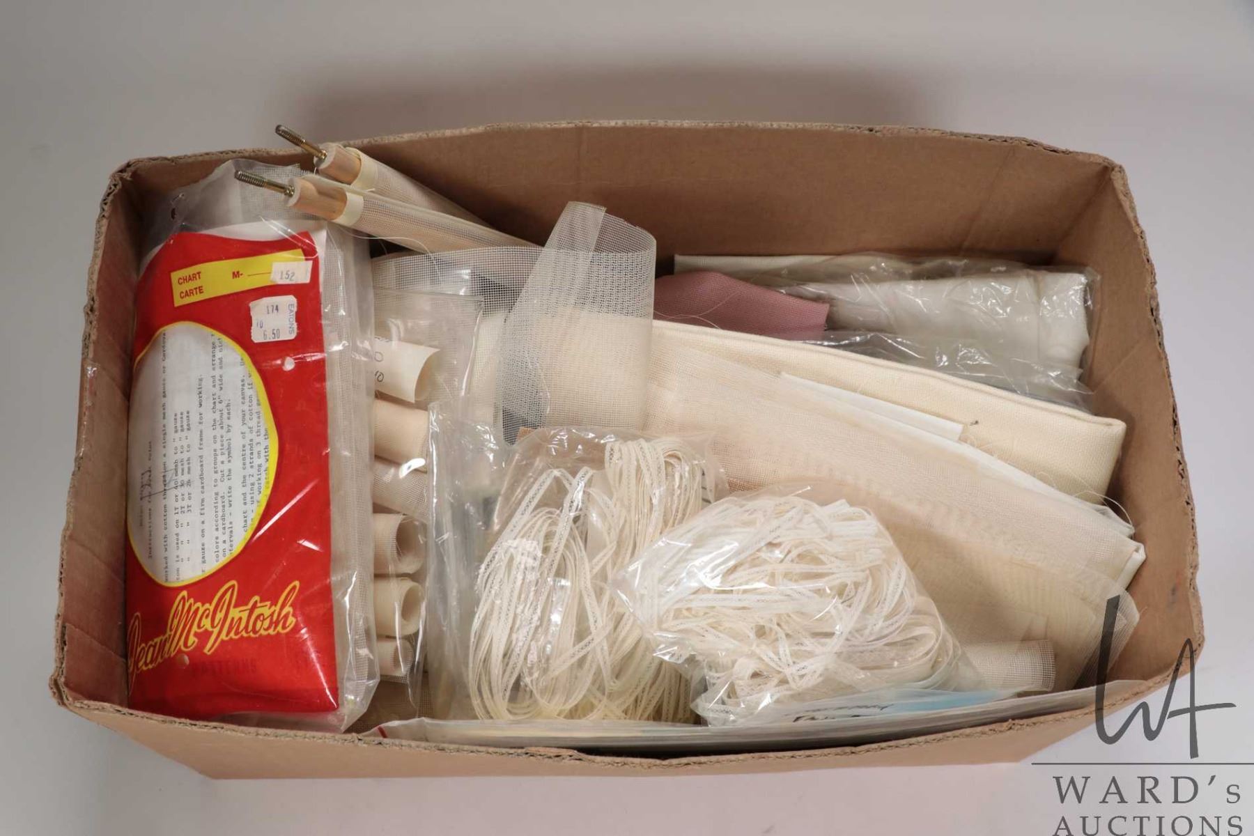 Lot 727 Box containing a selection of embroidery gauze and Aida and linen cloth plus battenburg lace etc.