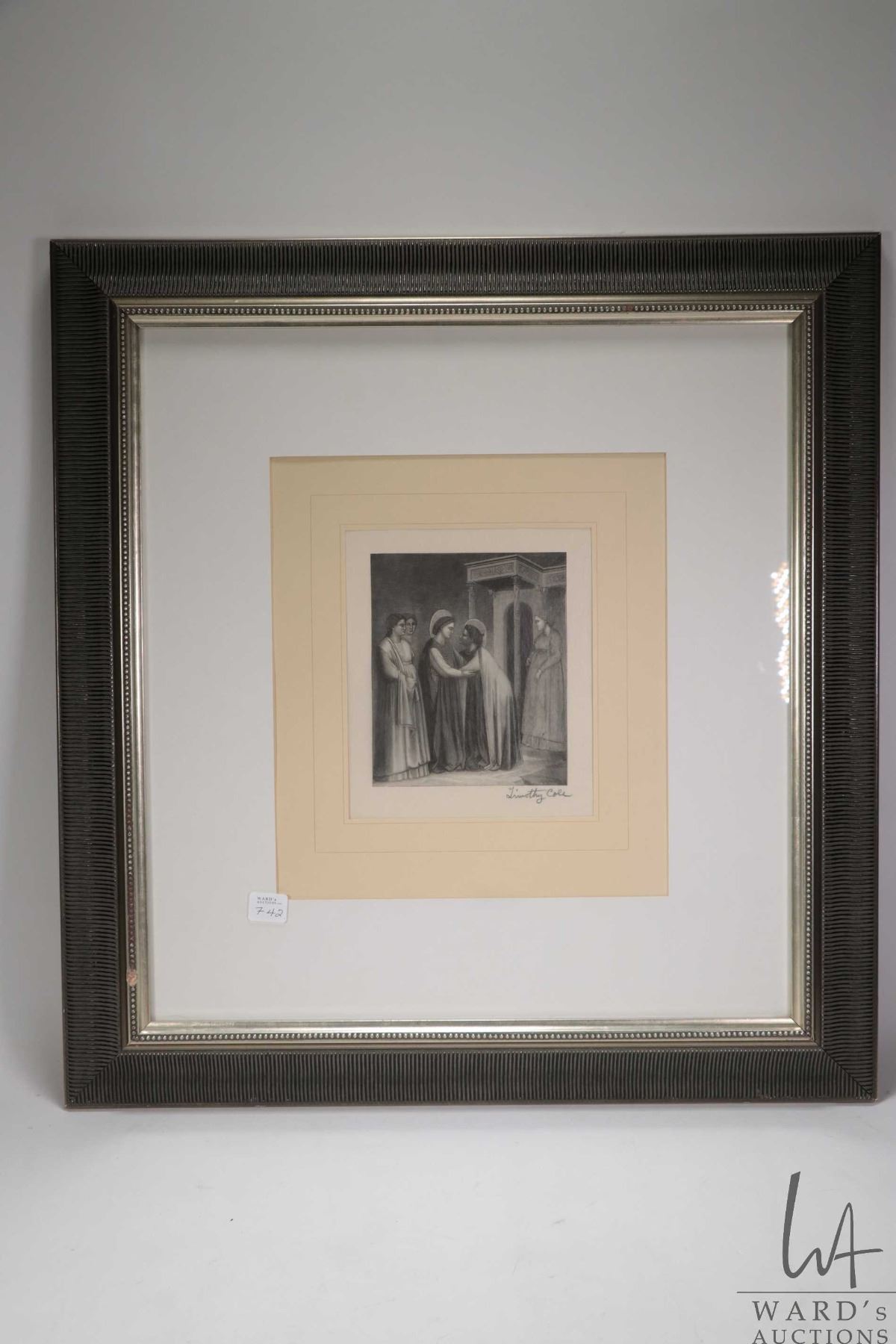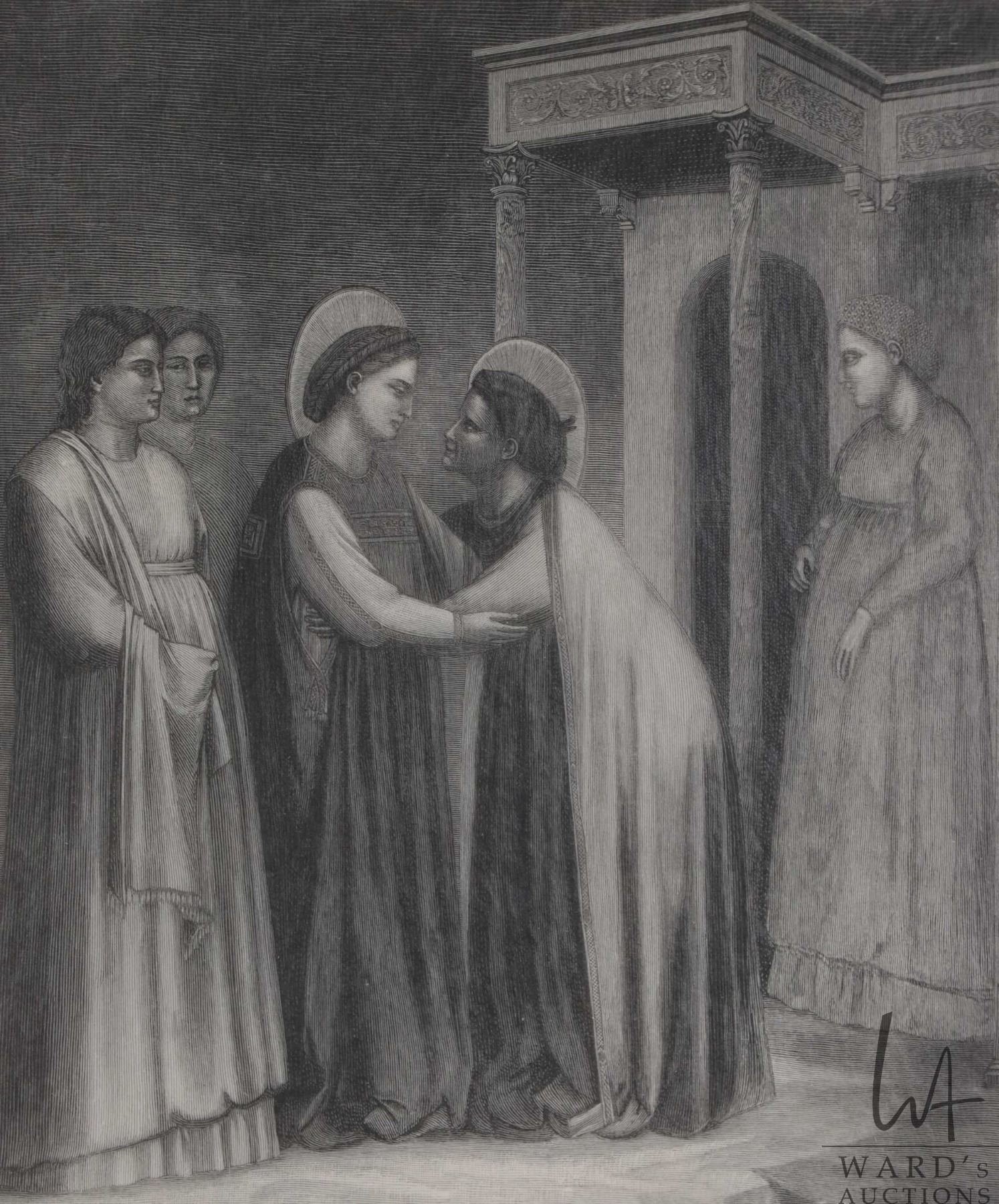Lot 742 Timothy Cole framed etched print " The Visitation of Mary to Elizabeth" based on a fresco by Giotto,