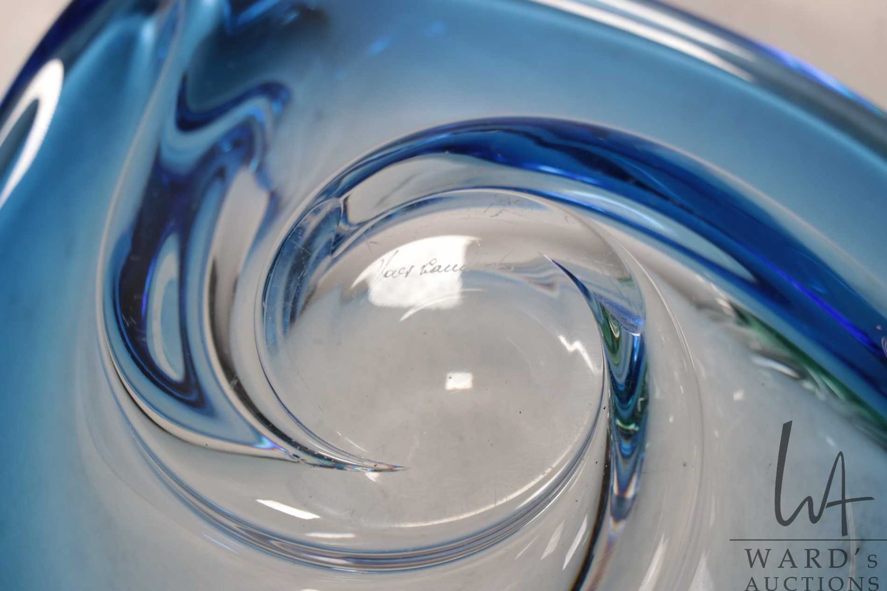 Lot 747 Two vintage signed Val St. Lambert crystal pieces including cobalt blue over clear 9" in diameter an