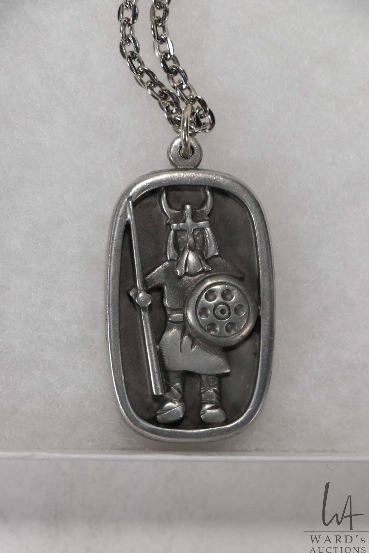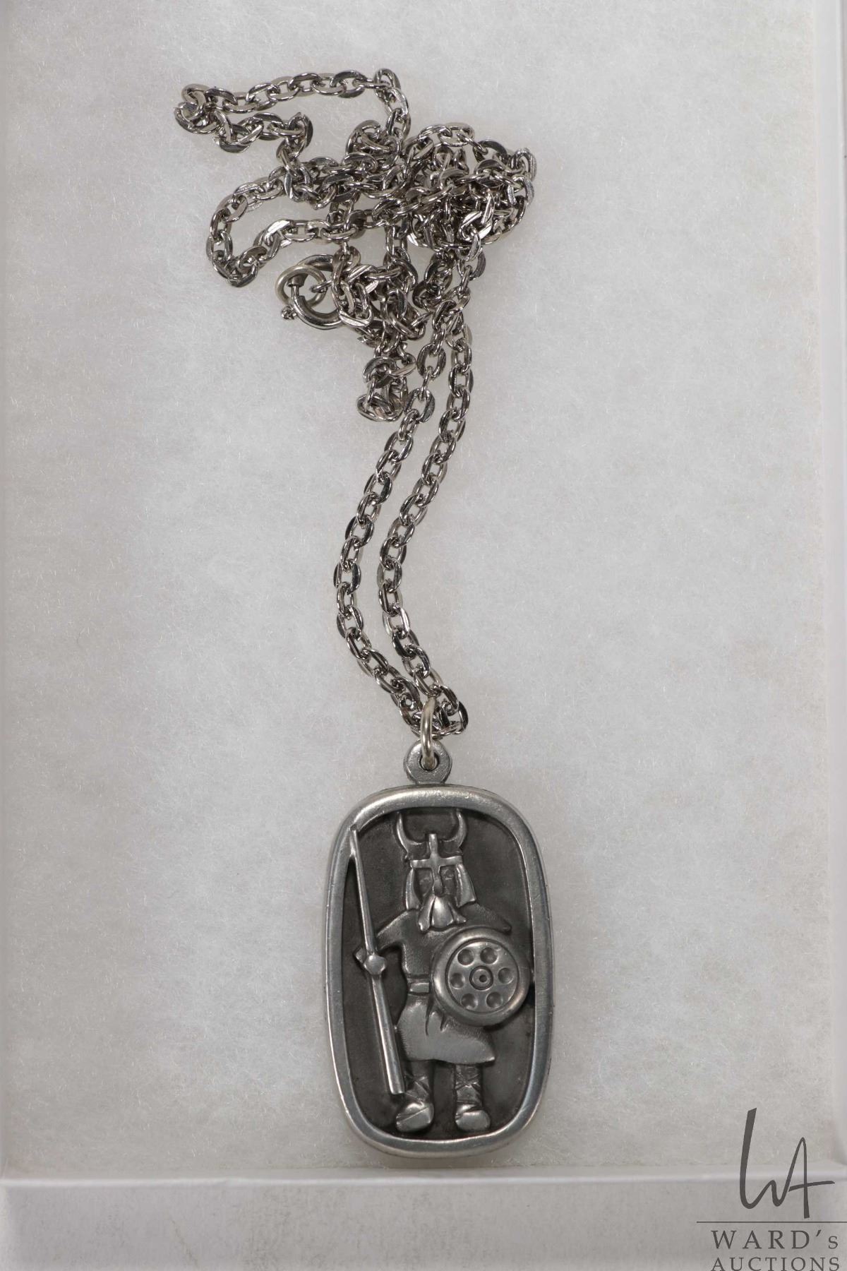 Lot 749 Vintage mid century Jorgen Jensen, Denmark, Viking motif no. 337 pewter pendant on 20" neck chain