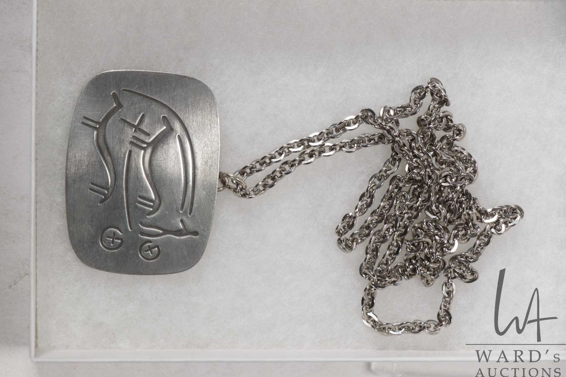 Lot 750 Vintage mid century Jorgen Jensen, Denmark modernist Chariot pendant no. 163, on 26" neck chain
