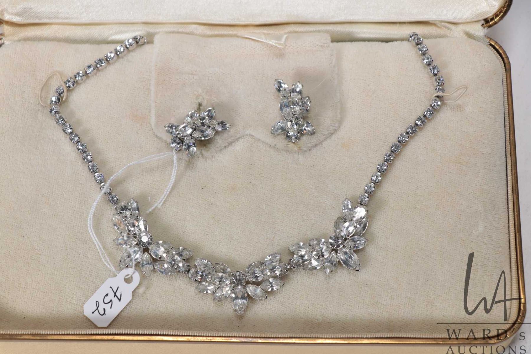 Lot 752 Signed Sherman silver tone necklace with marquise-cut crystals and matching earring and includes "Je