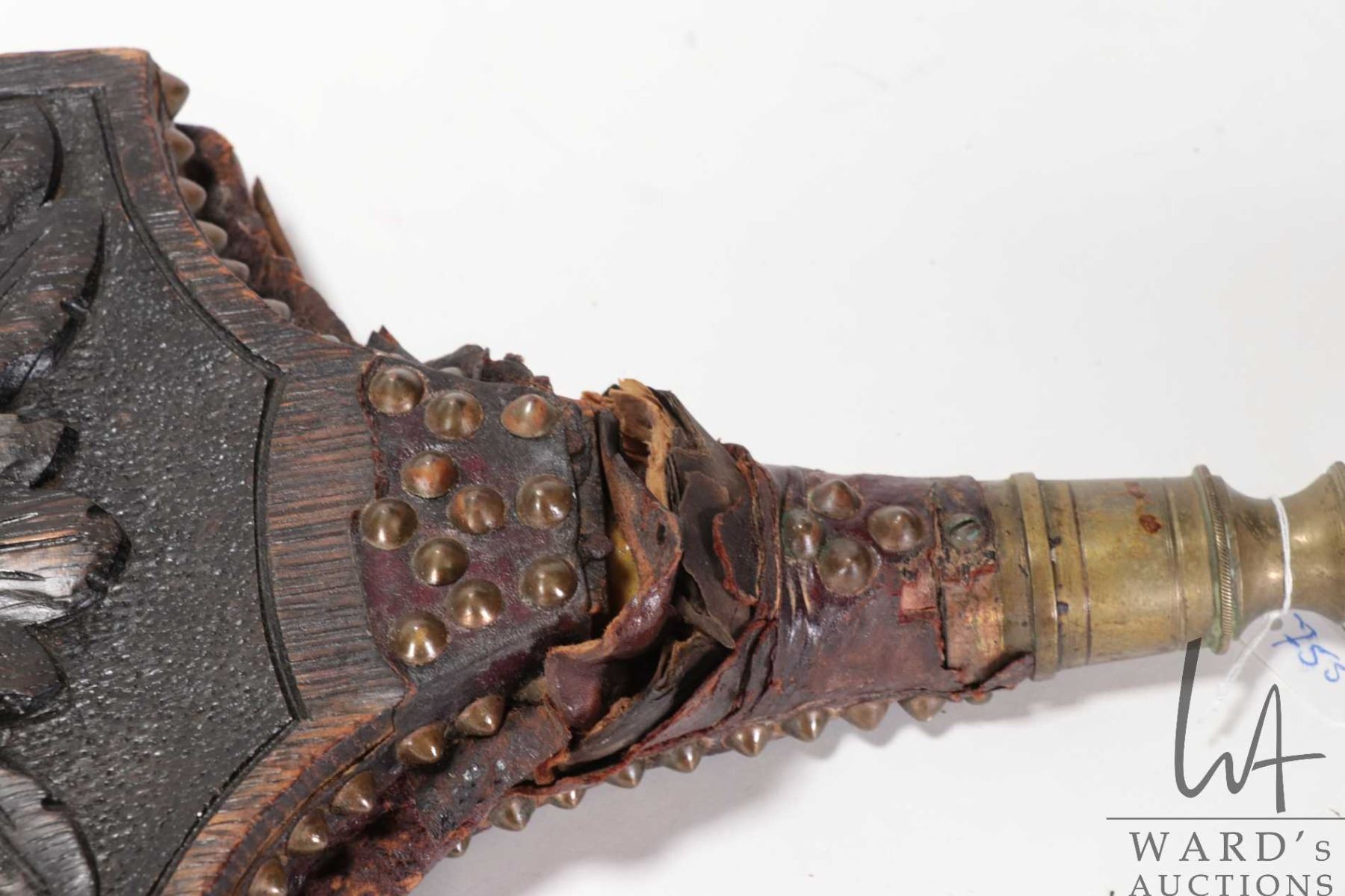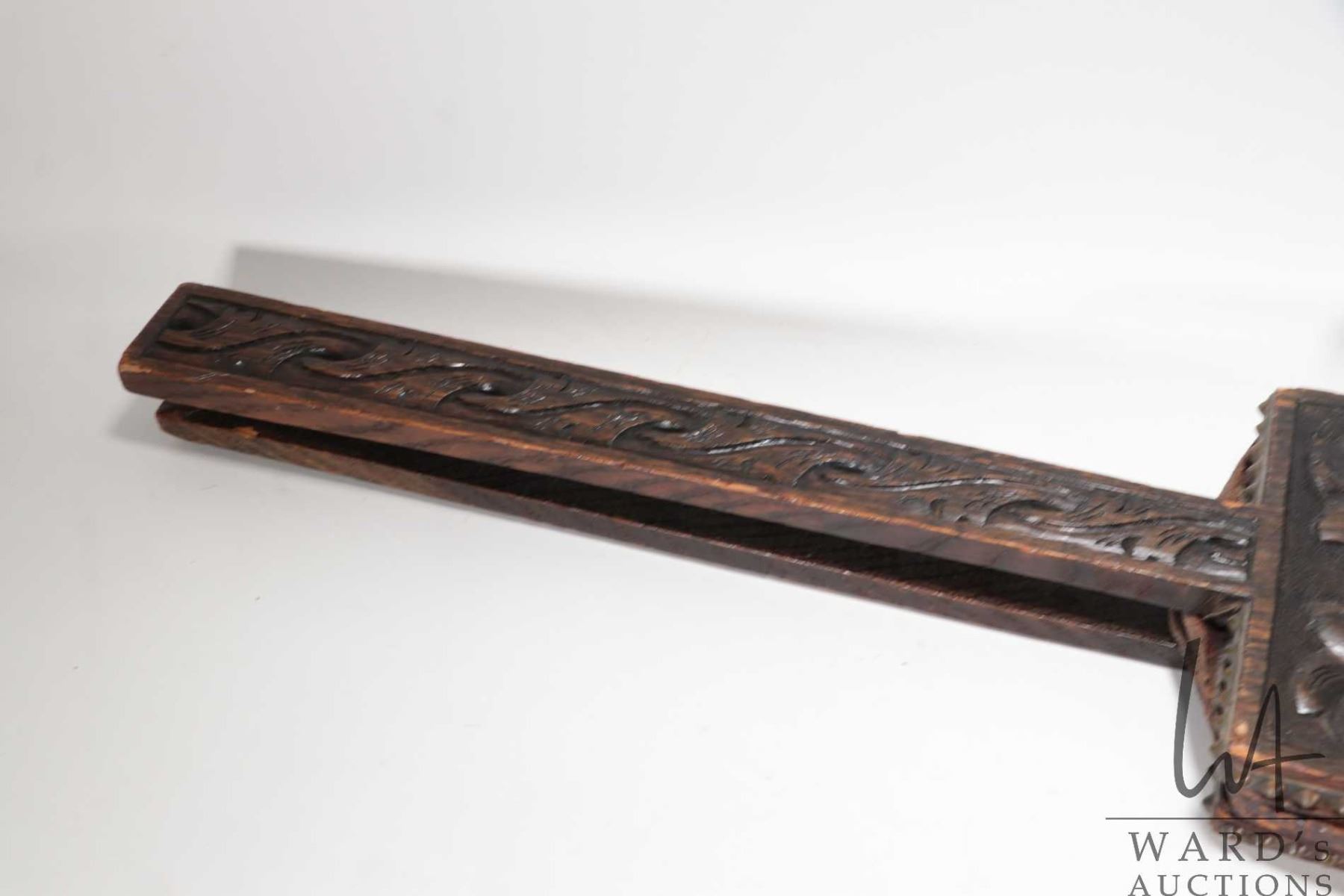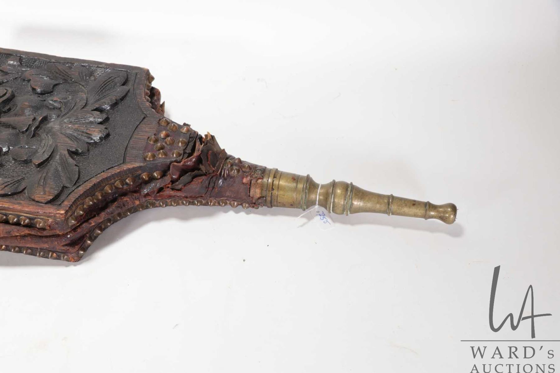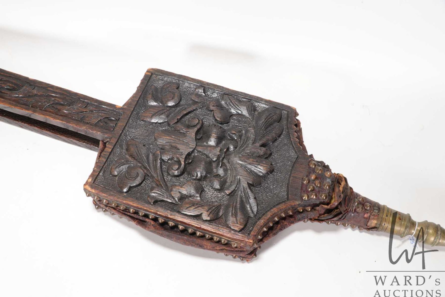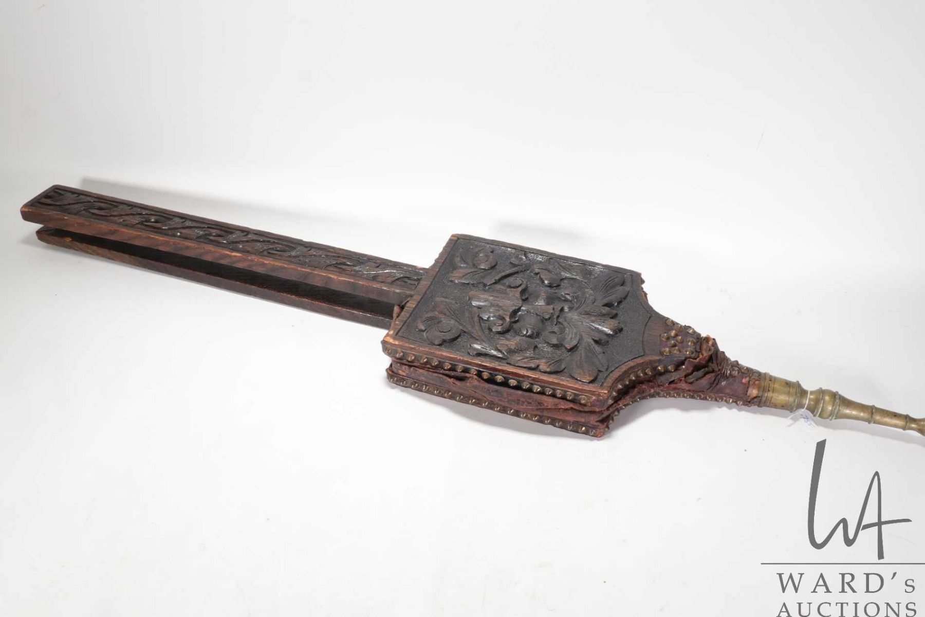 Lot 755 Antique oak hand carved "Green Man" bellows 41" in length
