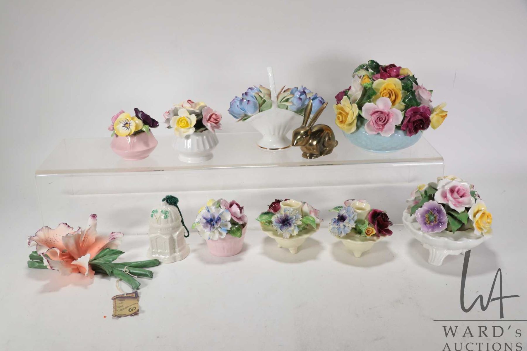 Lot 773 Tray lot of collectibles china florals including Royal Addersley, Radnor, Straford, Capodimonte etc.