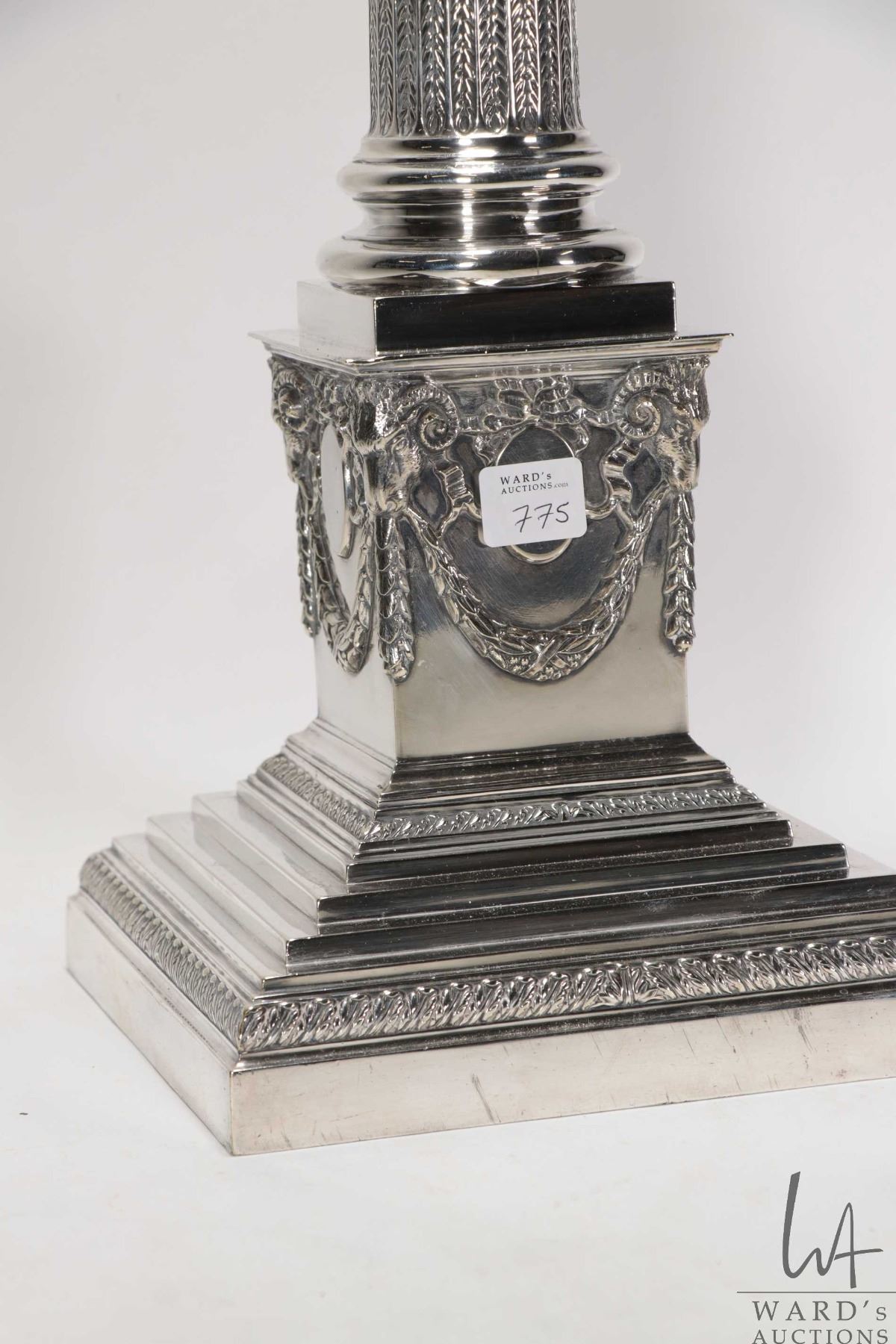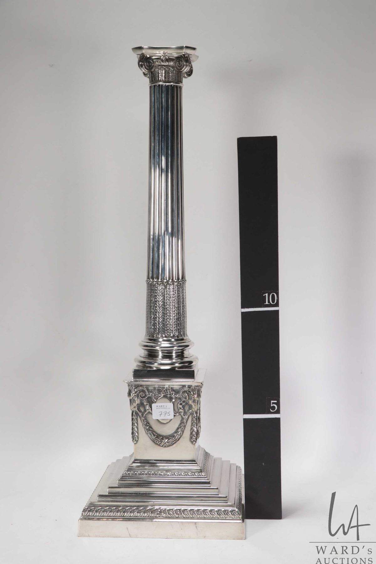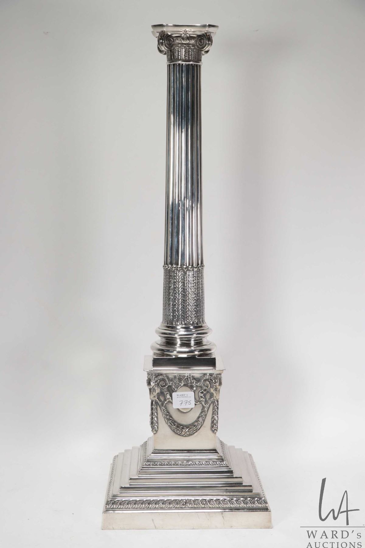 Lot 775 Antique silverplate Corinthian column table lamp base 22"