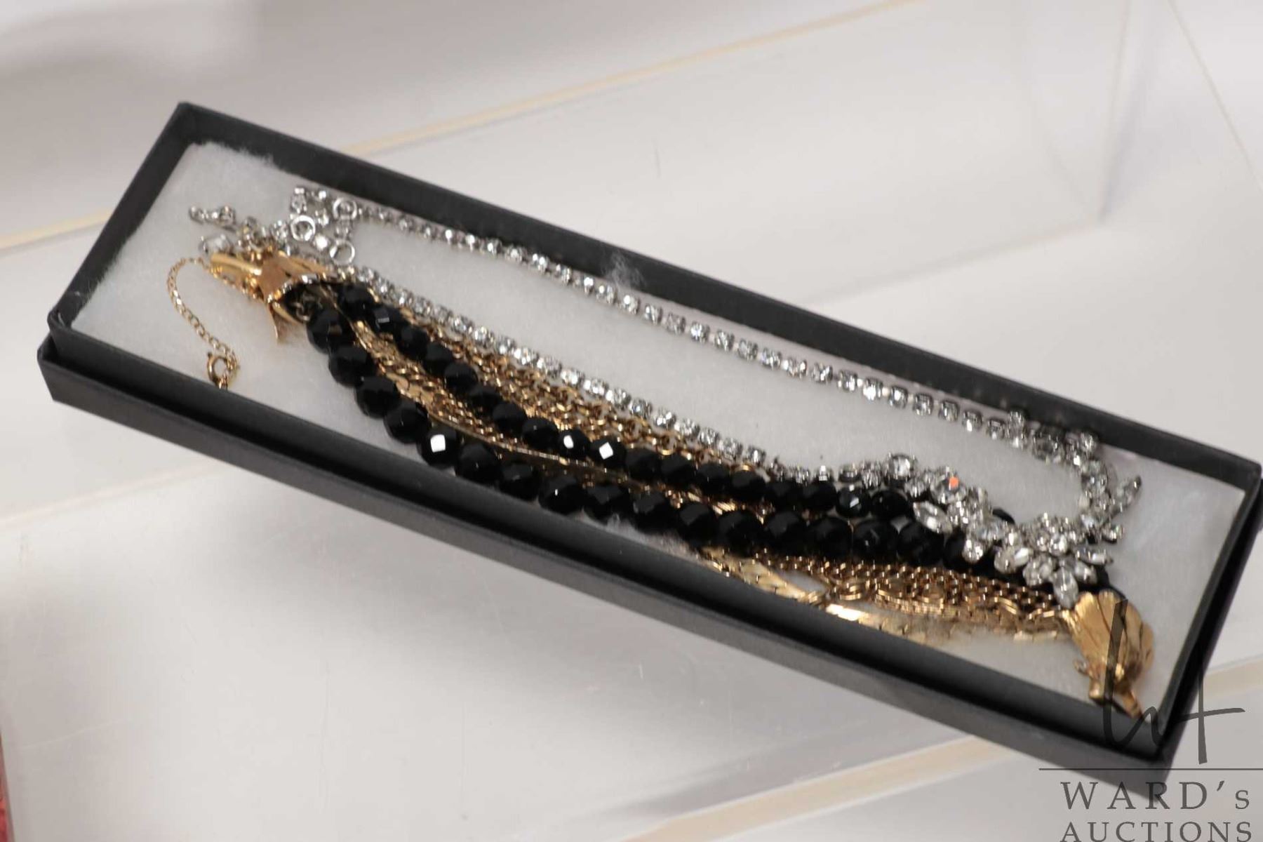 Lot 776 Tray lot of vintage and collectible jewellery including signed Sherman necklace set with round and m