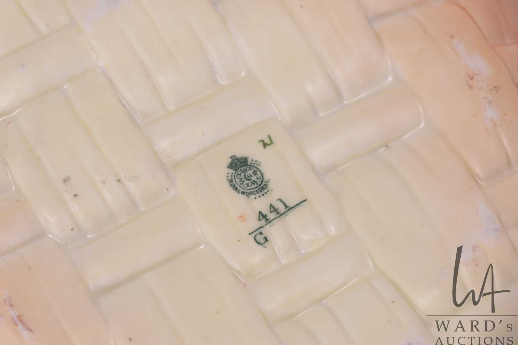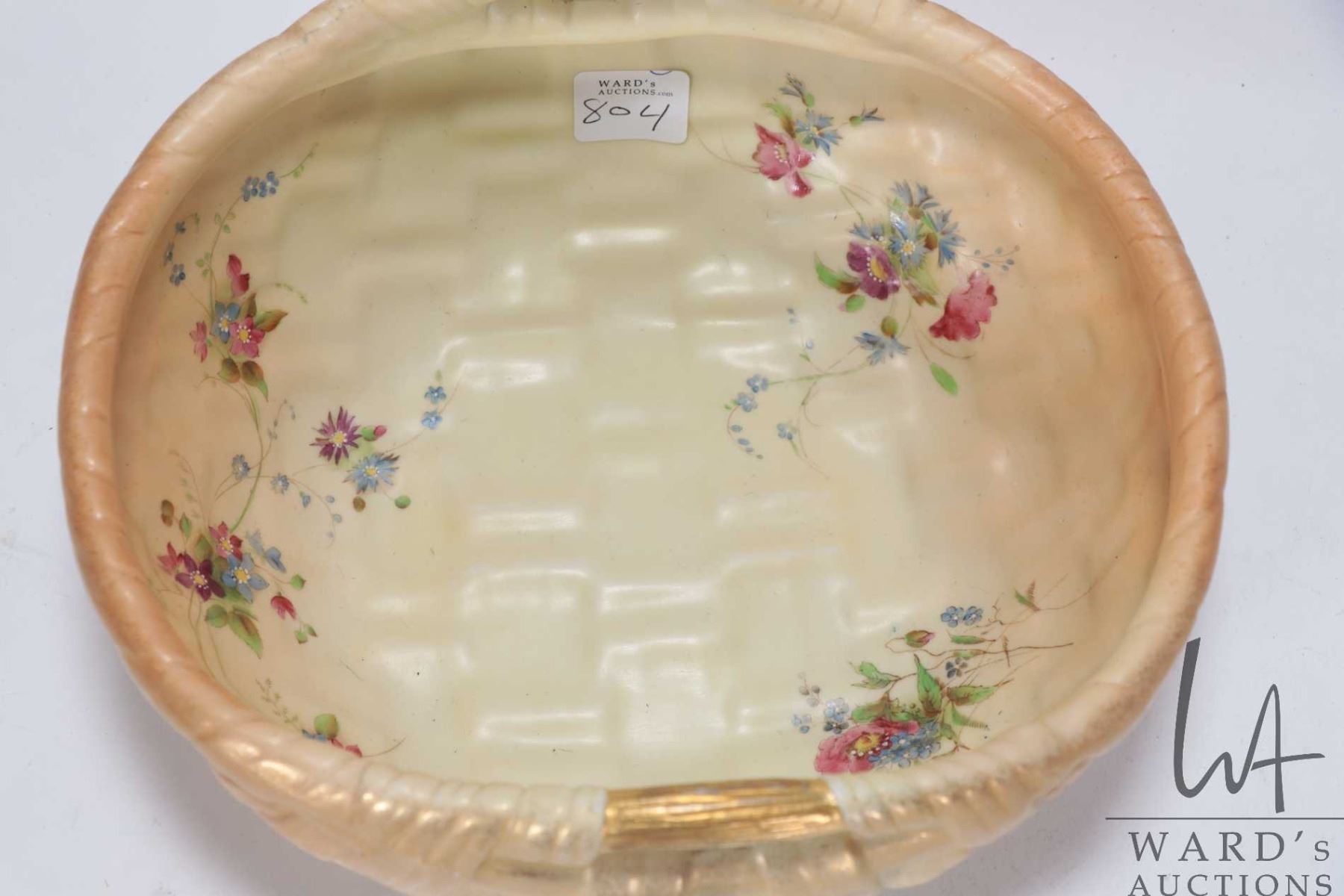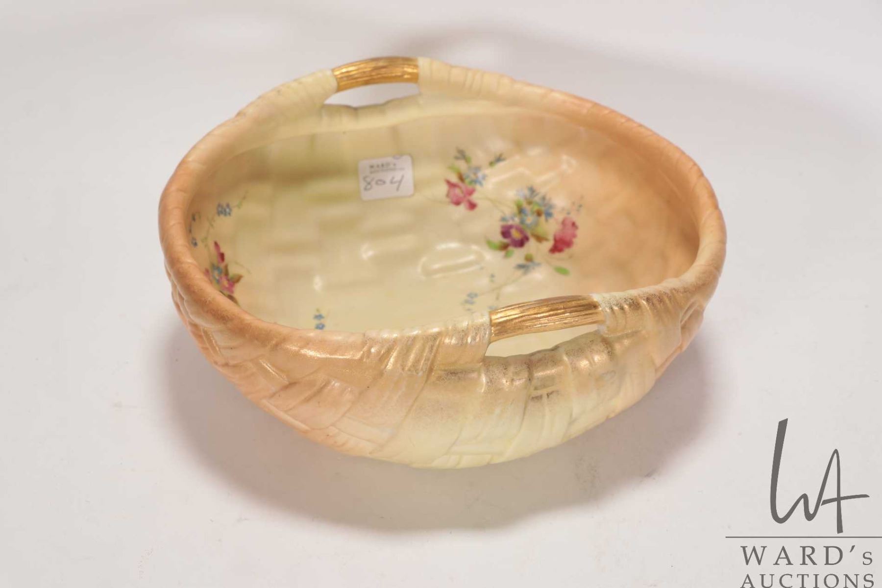 Lot 804 Antique Royal Worcester blush ivory basket with hand painted florals, mold no. 441, 4" in height, ci