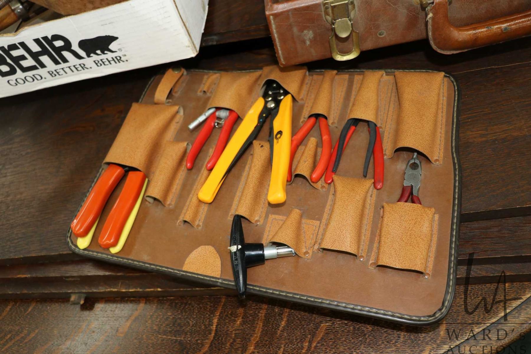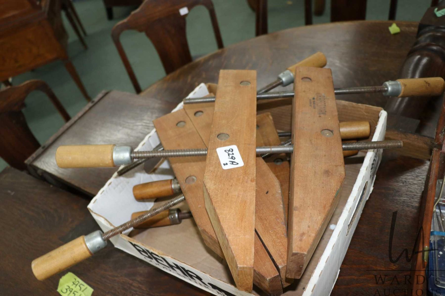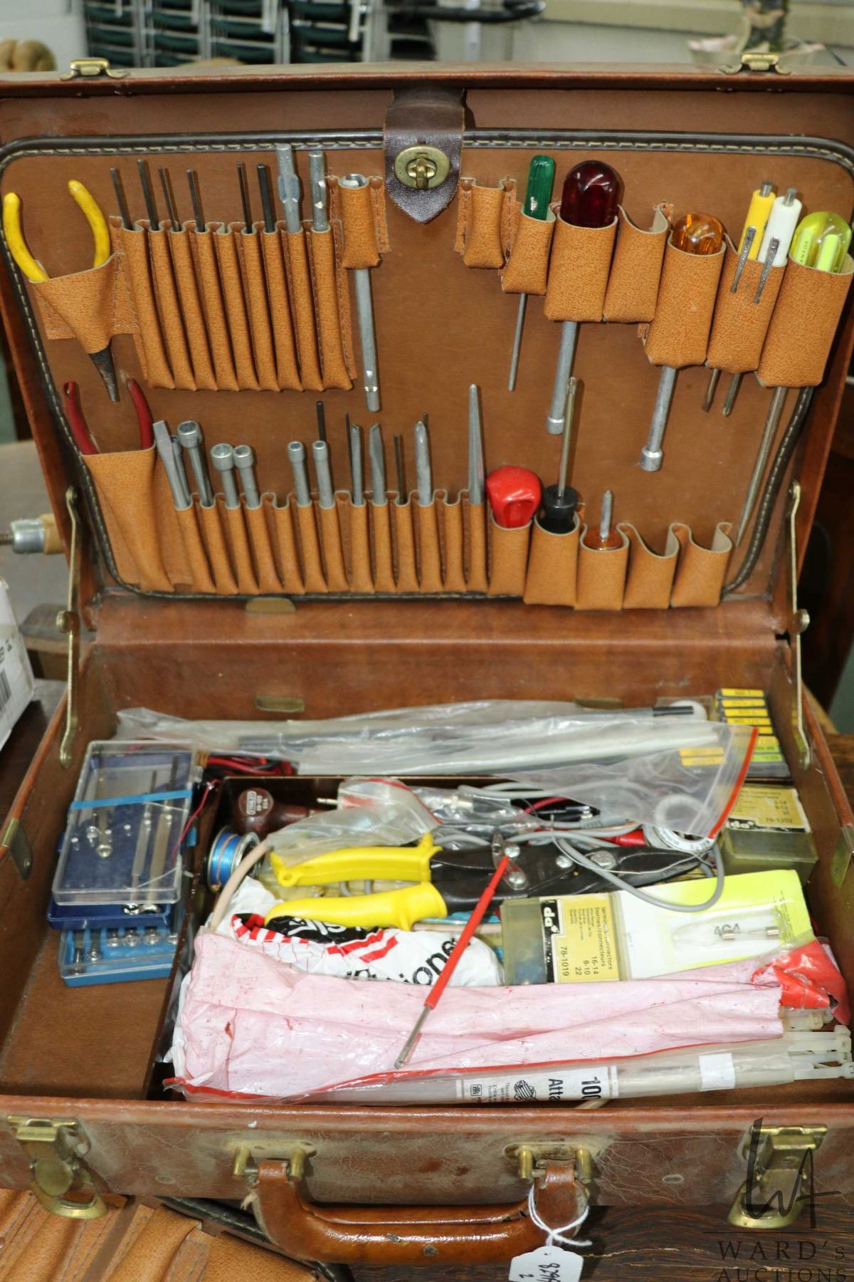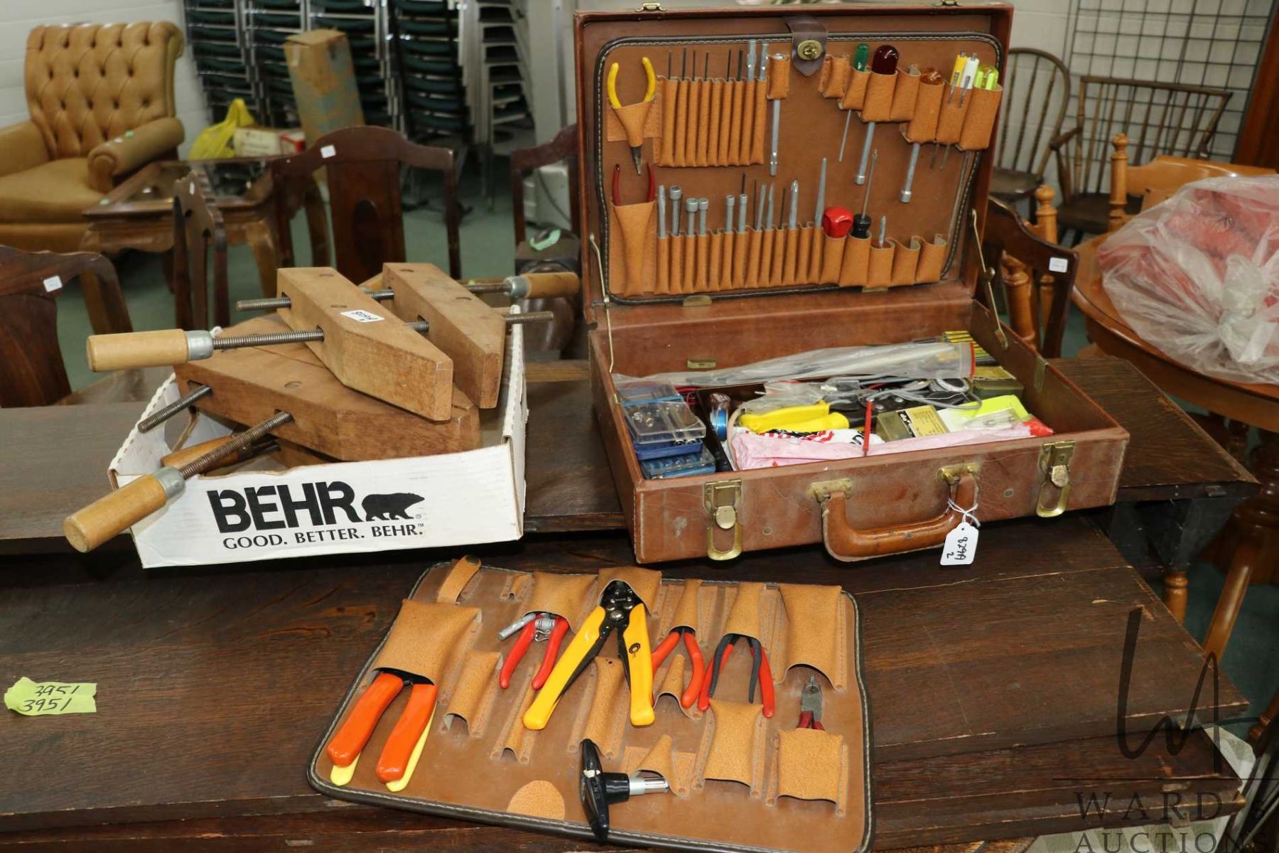Lot 829a Technician's service call tool brief case with tools and four cabinet maker's clamps including two J
