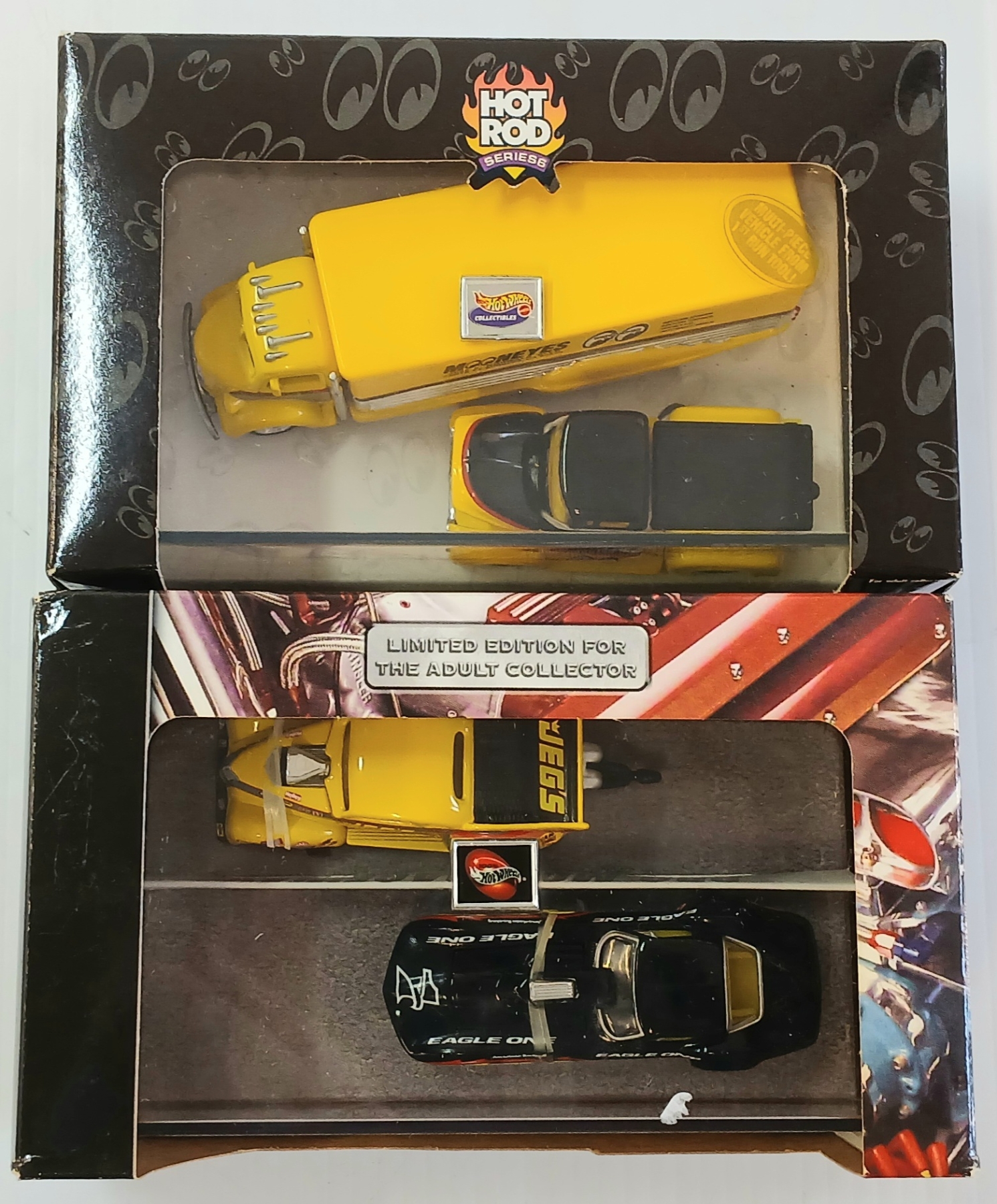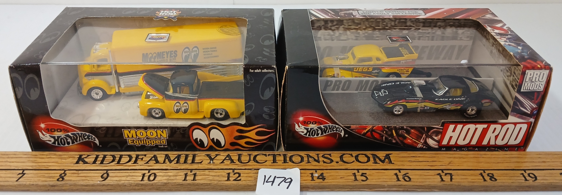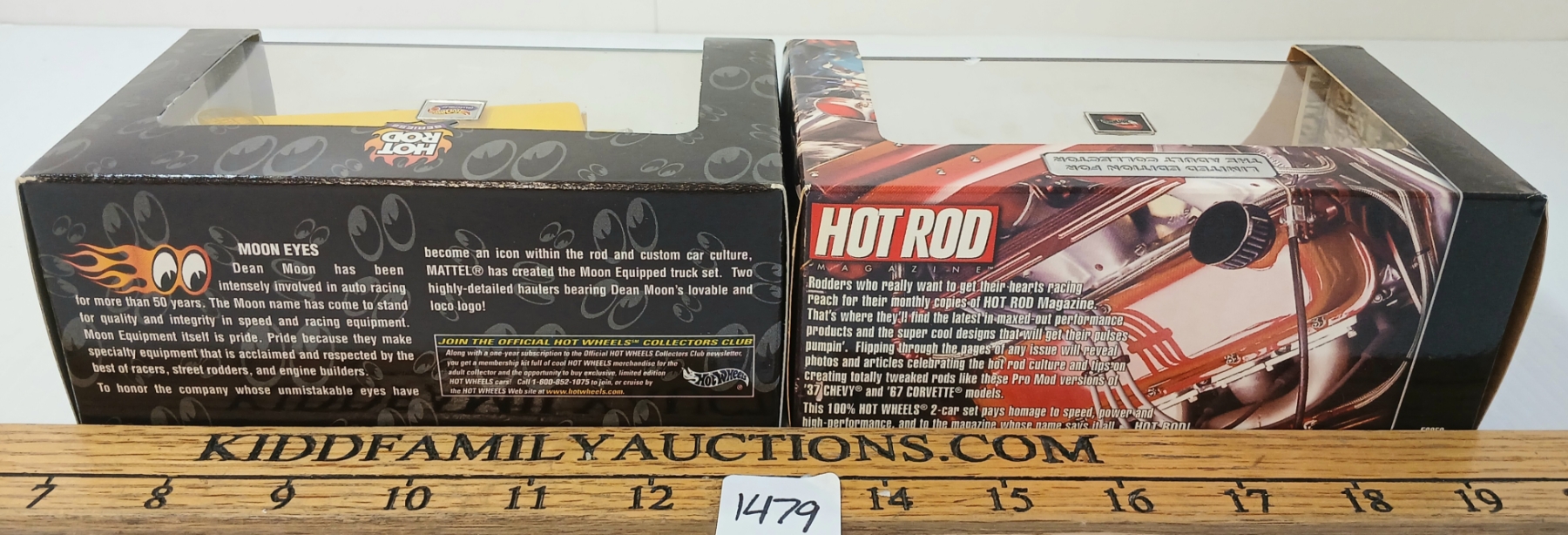 Lot 1479 LOT OF 2 - HOTWHEELS MOON EQUIPPED & HOT ROD MAGAZINE DIECAST MODEL SETS