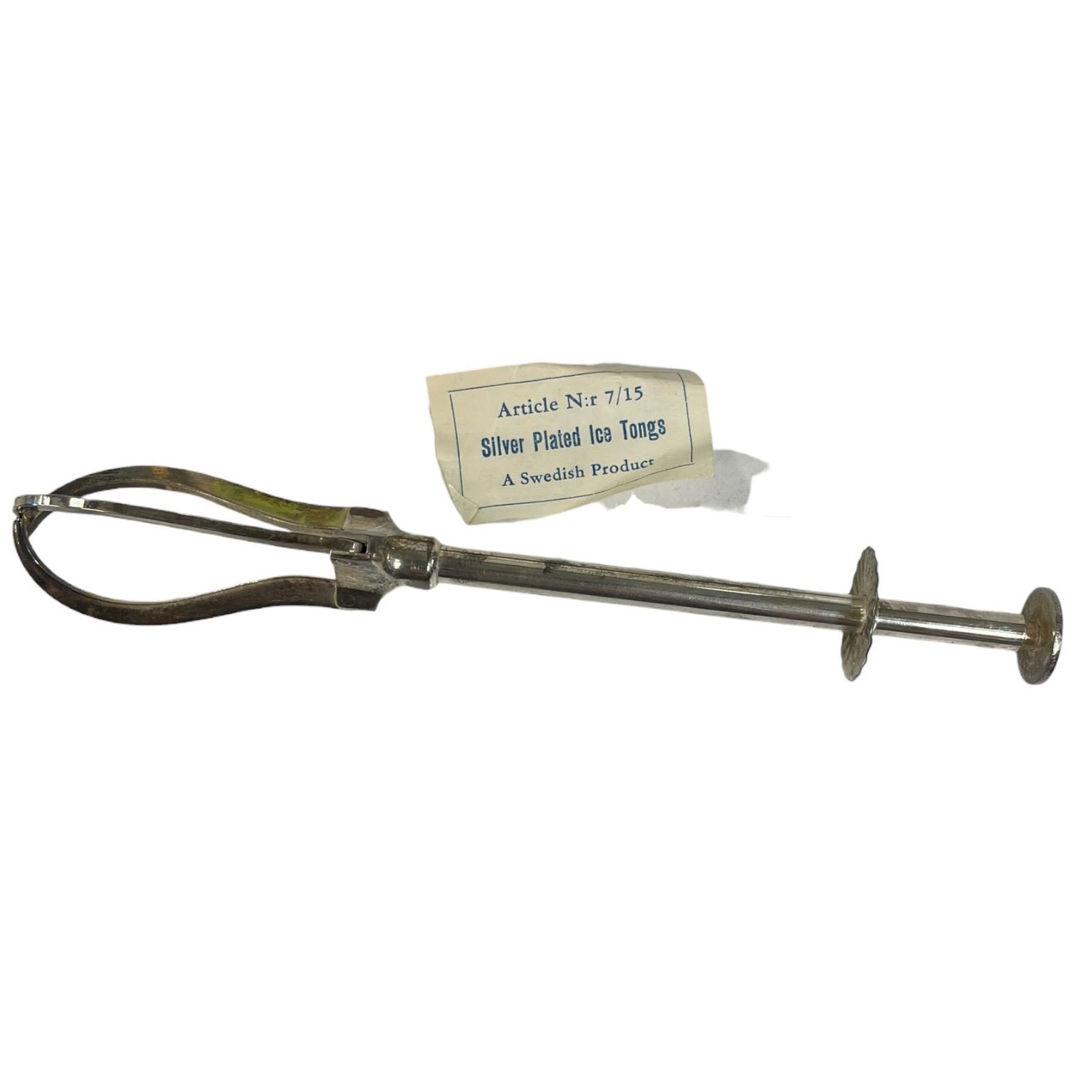 Vintage Clement Steak Knife Set, Gold Tone Handled Knife, & Silver Plated Ice Tongs