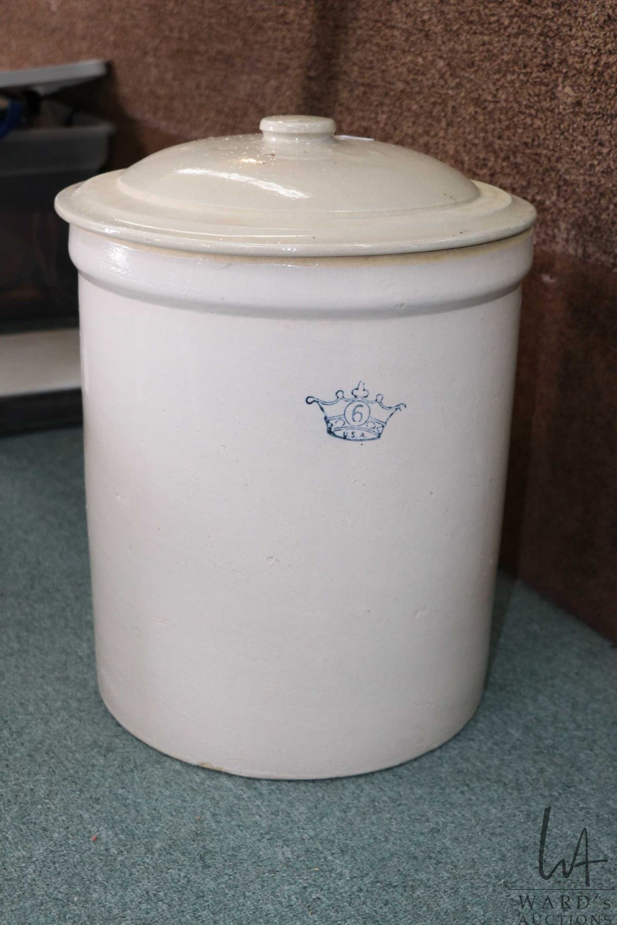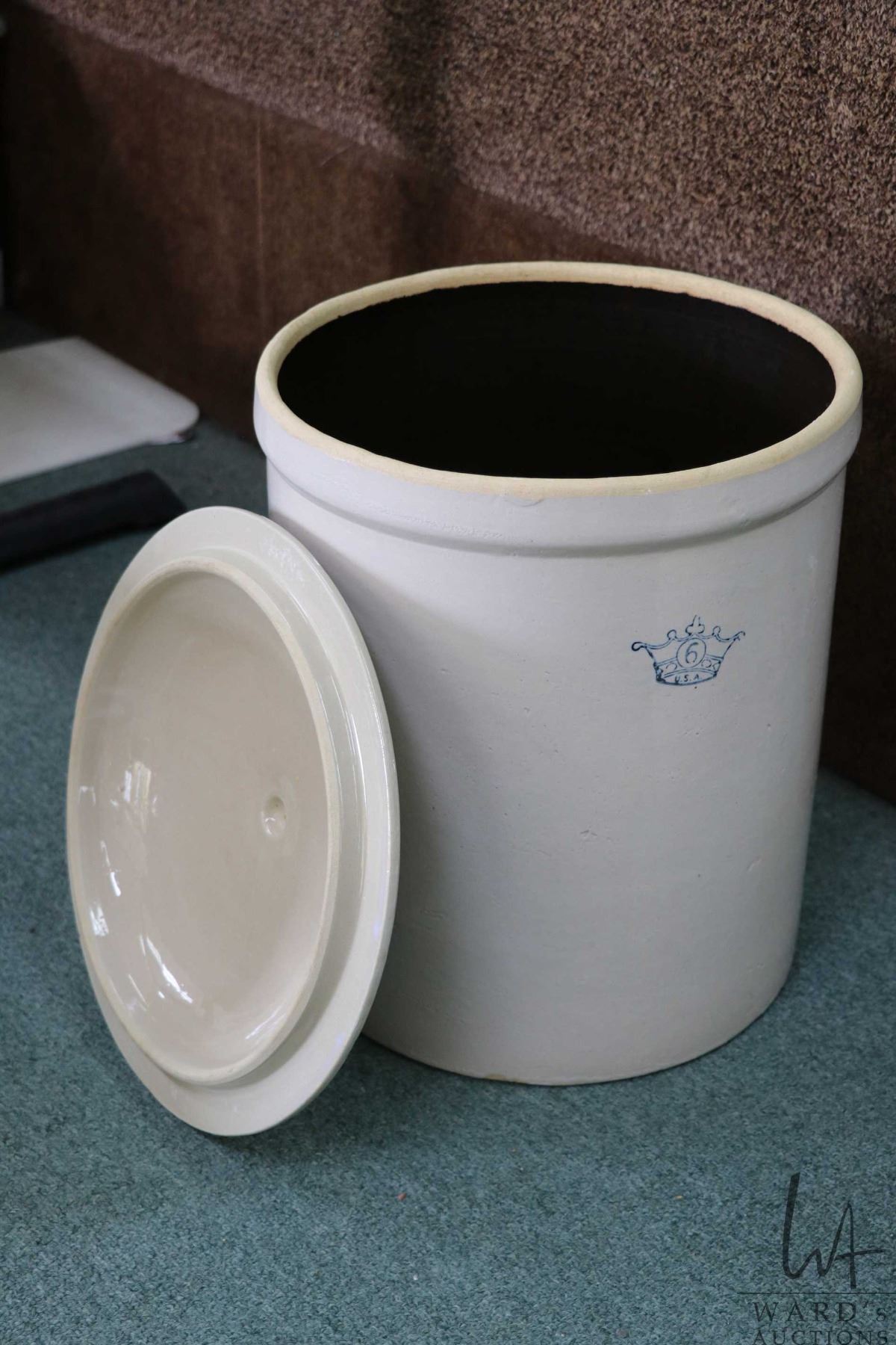 Lidded six gallon USA stoneware crock