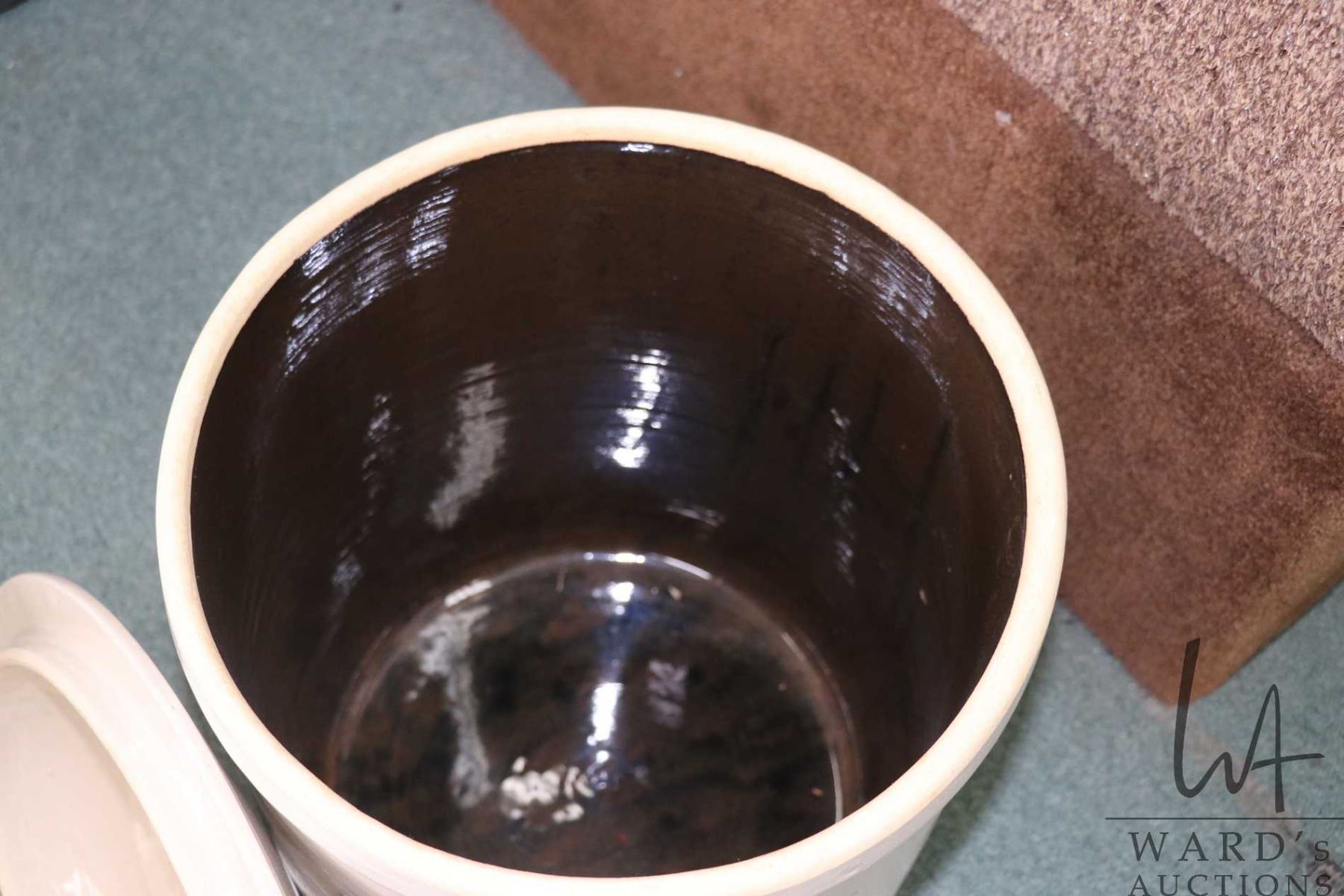 Lot 424 Lidded six gallon USA stoneware crock