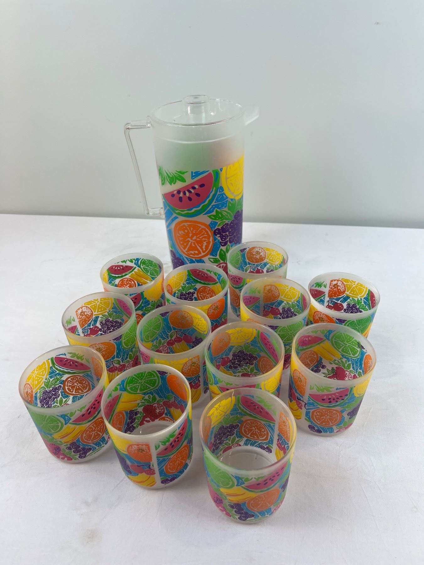 Lot 225 Vintage MCM Fruit Pitcher and Cups serving set