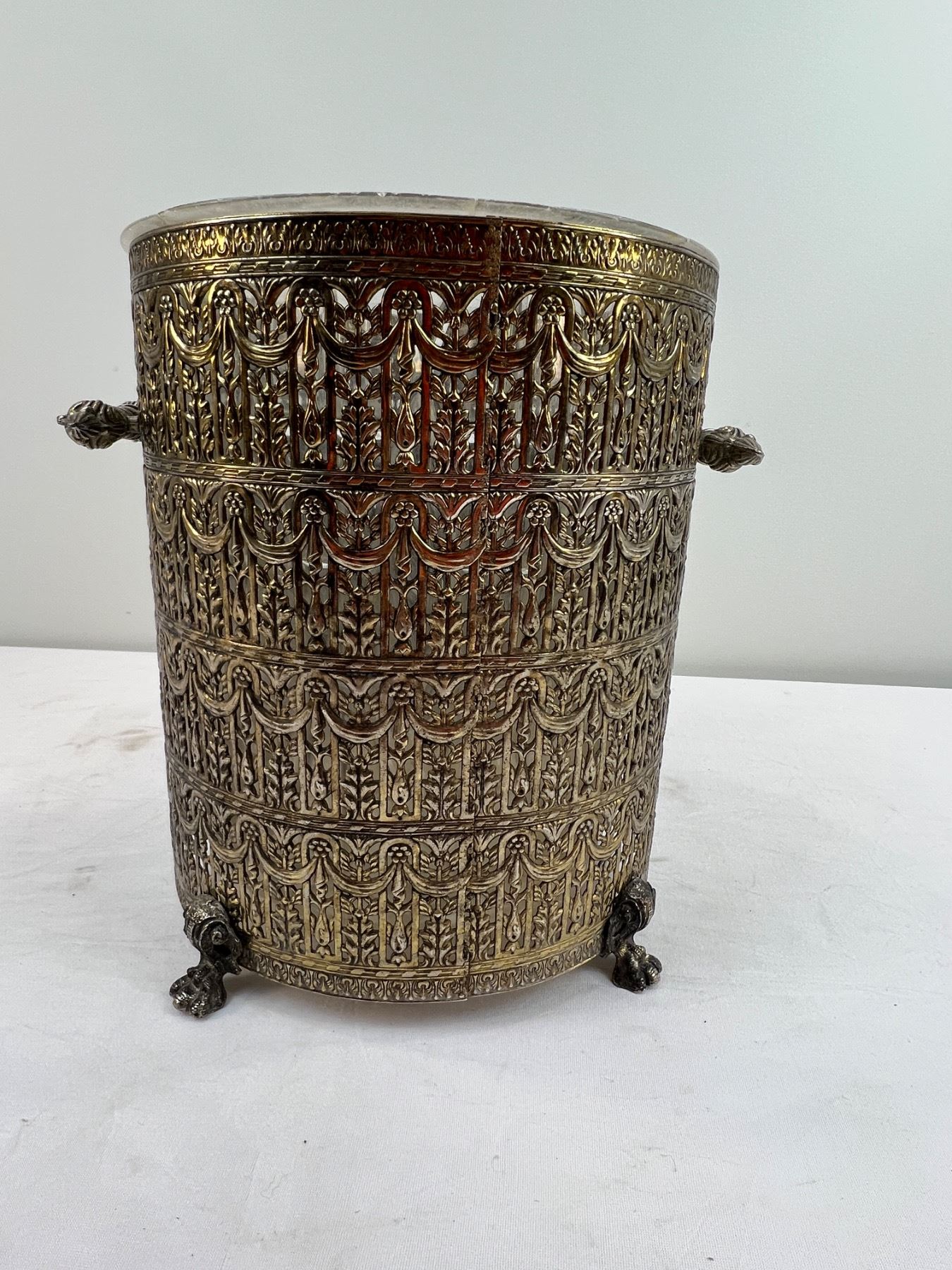 Missing one leg - Made of a soft metal material with removable basket - 10.5" tall