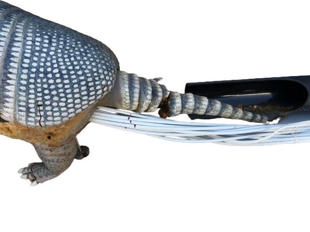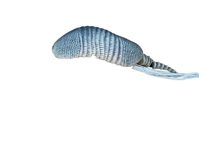 Advanced, life-sized armadillo puppet controlled by cable, rod, and radio systems used for AT&T commercials. Crafted with painted foam and latex rubber, the puppet boasts a mechanical head, neck, and tail, along with rod-operated body and limbs.