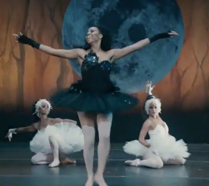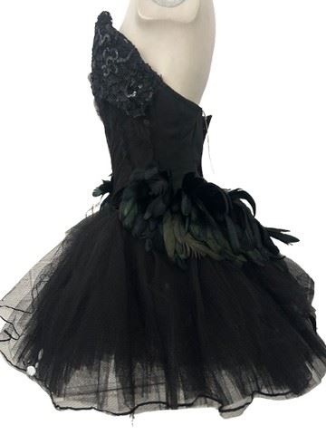 Kendra (Erica Ash) screen worn Black Swan performance, custom designed, black with feather and rhinestone detail corset and tutu.