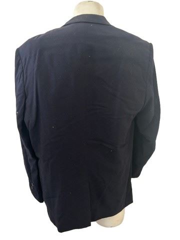 Own a piece of Disney history with this distinguished navy blue felt suit jacket, custom-made for the beloved Walt Disney actor, Wally Boag. Known to millions for his memorable roles in classic Disney films like The Love Bug (1968), Son of Flubber (1963), The Golden Horseshoe Revue (1962), The Absent-Minded Professor (1961), and Thrill of a Romance (1945), Boag brought joy and laughter to audiences worldwide. This unique jacket features a Western Costume label inside the pocket, a testament to its quality and Hollywood provenance. A rare opportunity to acquire a tangible connection to a celebrated figure from the Golden Age of Disney!