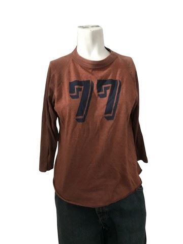 Enough (2002) - Slim Hiller's (Jennifer Lopez) screen worn brown with "77" vintage muddy baseball sleeve shirt (m), GAP dirty denim worker jeans (29x30), and soiled white, canvas with rubber sole "J. Crew" sneakers labeled "Slim #4" in marker on the insole (8). Includes costume department wardrobe tag noting it was used in scene 75 int Mustaphas.