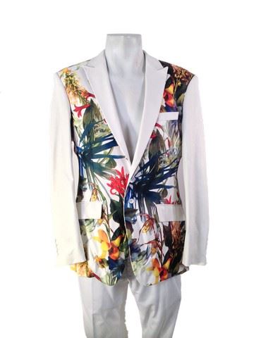 Kyle (Owen Wilson) screen worn, hero, off white "Angelino" suit coat made of artificial leather and is covered in front and back body of the jacket in a bright floral pattern(38), "Zara Man" pants, white, "Kenneth Cole Reaction" shoes white high-tops with white laces blue(11). Worn in the wedding scene. Continuity sheet along with wardrobe tags and wardrobe pictures of Kyle(Owen Wilson).