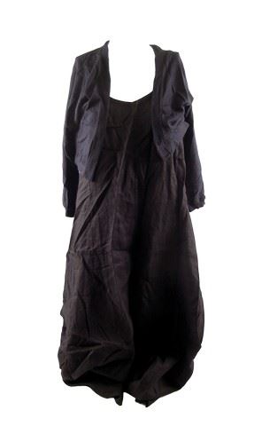 Barbara Weston (Julia Roberts) screen worn, hero, navy cashmere three quarter sleeve 'Elie Tahari' cardigan sweater, and black linen sleeveless scoop neck with cotton black slip 'Eileen Fischer' dress.