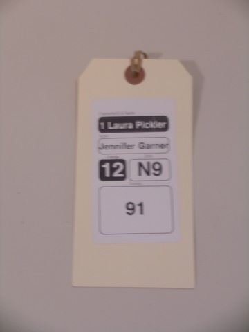 Butter (2011) - Laura (Jennifer Garner) screen worn, hero, light blue with stripes 'Faconnable' shirt, (size 4) and light blue and purple floral print apron. Includes wardrobe tag!