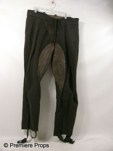 Straight from the set of the Fourteenth Century fantasy thriller, Season of the Witch, this is Knight Felson (Ron Perlman) screen worn, hero, green, woven leather , broken brass buckles 'custom made' under armor (no size) and brown wool and leather trouser (no size). Includes wardrobe tag!