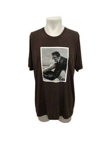 Exclusive and limited edition t - shirt featuring a never before seen image of James Dean after he won his first and last car race, just before his untimely passing. The image came direct from the archives of the negatives from the photographer's camera. Shirt is Bella + Canvas. Heathered brown. Size XL. 50% polyester. 25% cotton. 25% rayon.