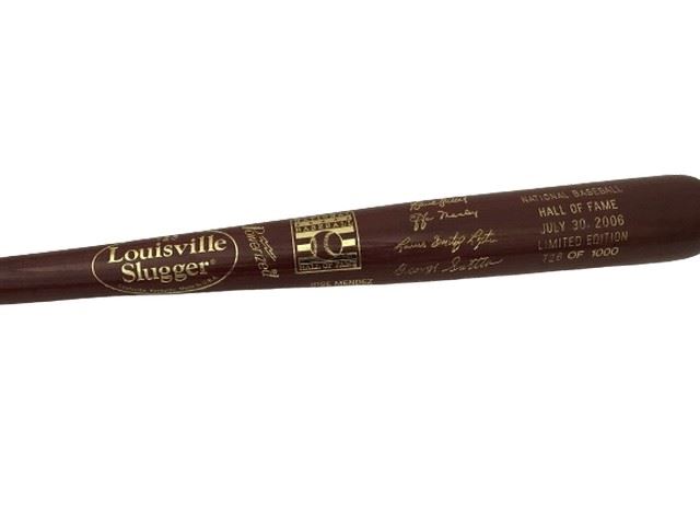 Louisville Slugger One number 125 powerized, engraved National Baseball Hall of Fame with the names Pete Hill, Frank Grant, Jose Mendez, Sol White and Cristobal Torriente. Engraved with “National Baseball Hall of Fame July 30, 2006, Limited Edition numbered 726 of 1000”.