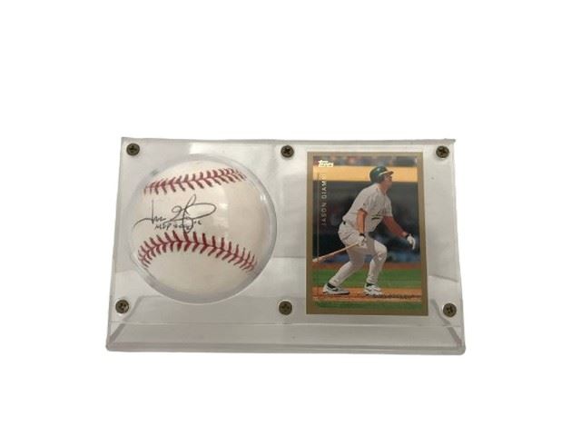Lot 489 Jason Giambi Signed Baseball & Topps Card