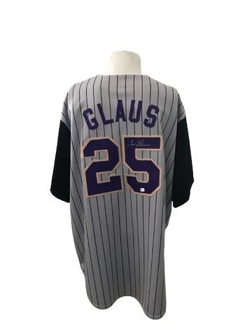 Troy Glaus #25 signed Arizona Diamondbacks jersey. Majestic gray and black pinstriped(XX).
