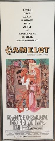 Camelot (1967) the musical, framed poster (no glass). (36x14). From Todd Fisher/Debbie Reynolds Archives Collection. This hung on the walls of the Debbie Reynolds Dance Studio. Can be removed from the frame to reduce shipping charges.