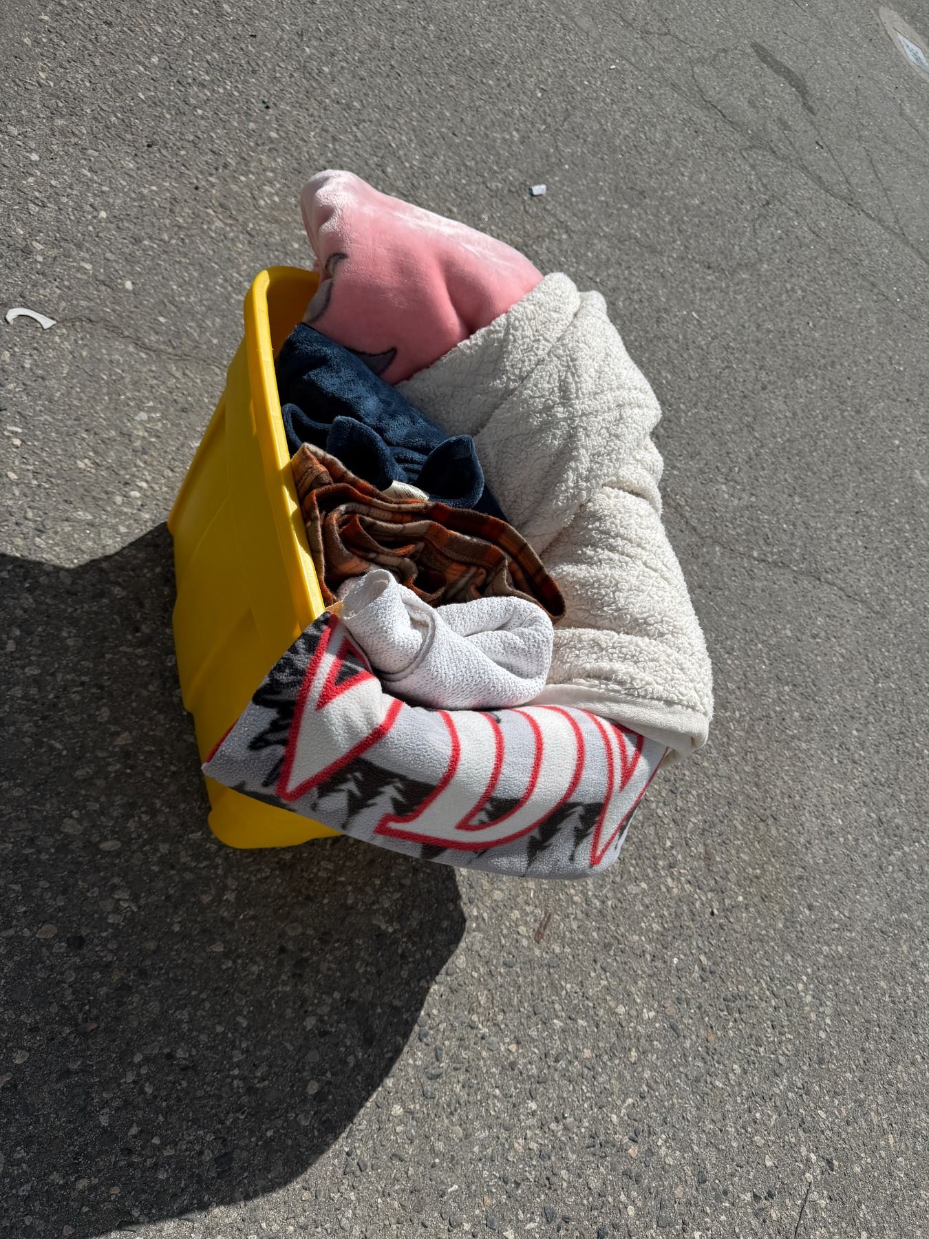 Lot 646 Bin with lid and Blankets