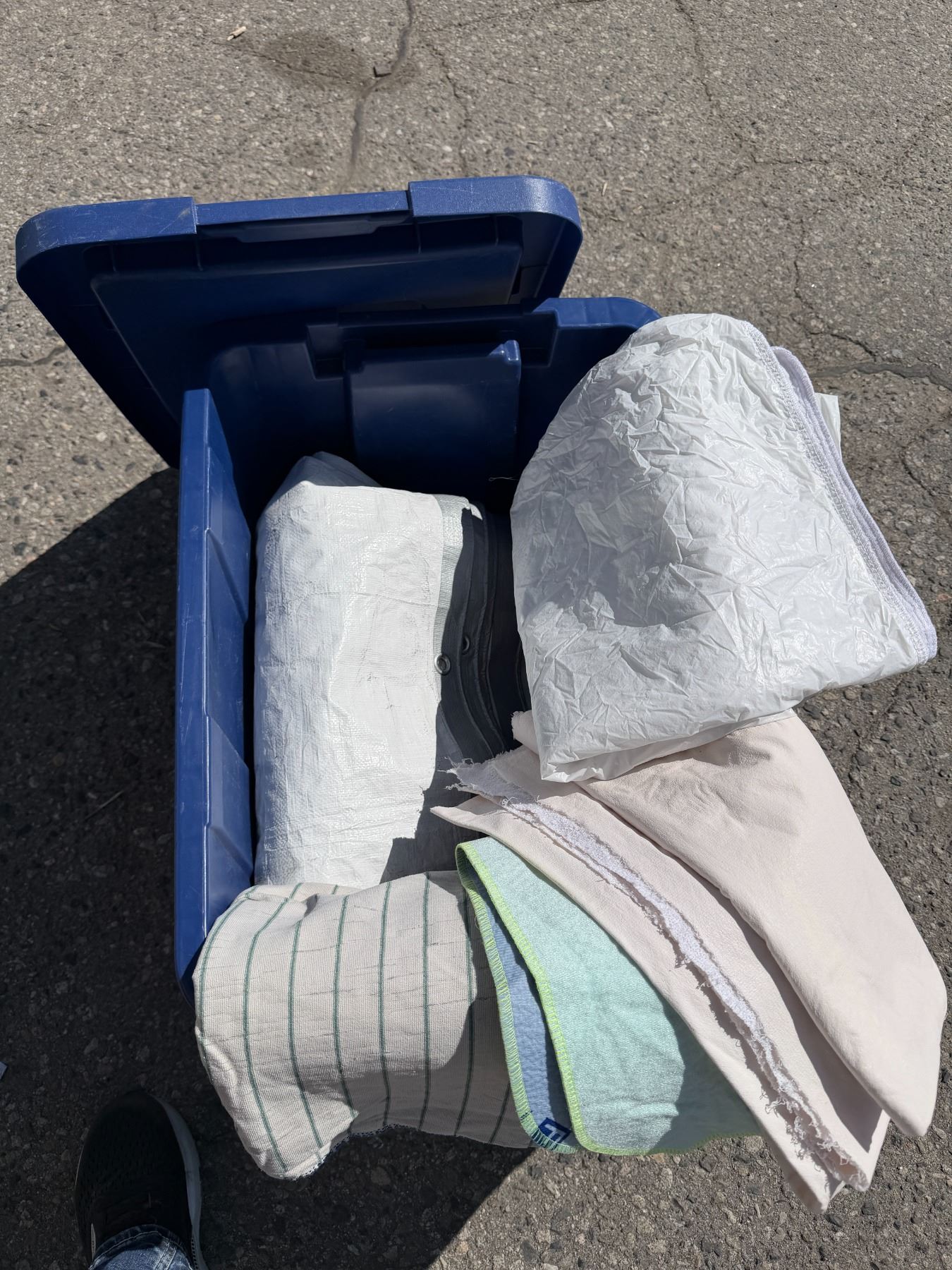 Tarp and other items with Bin and lid