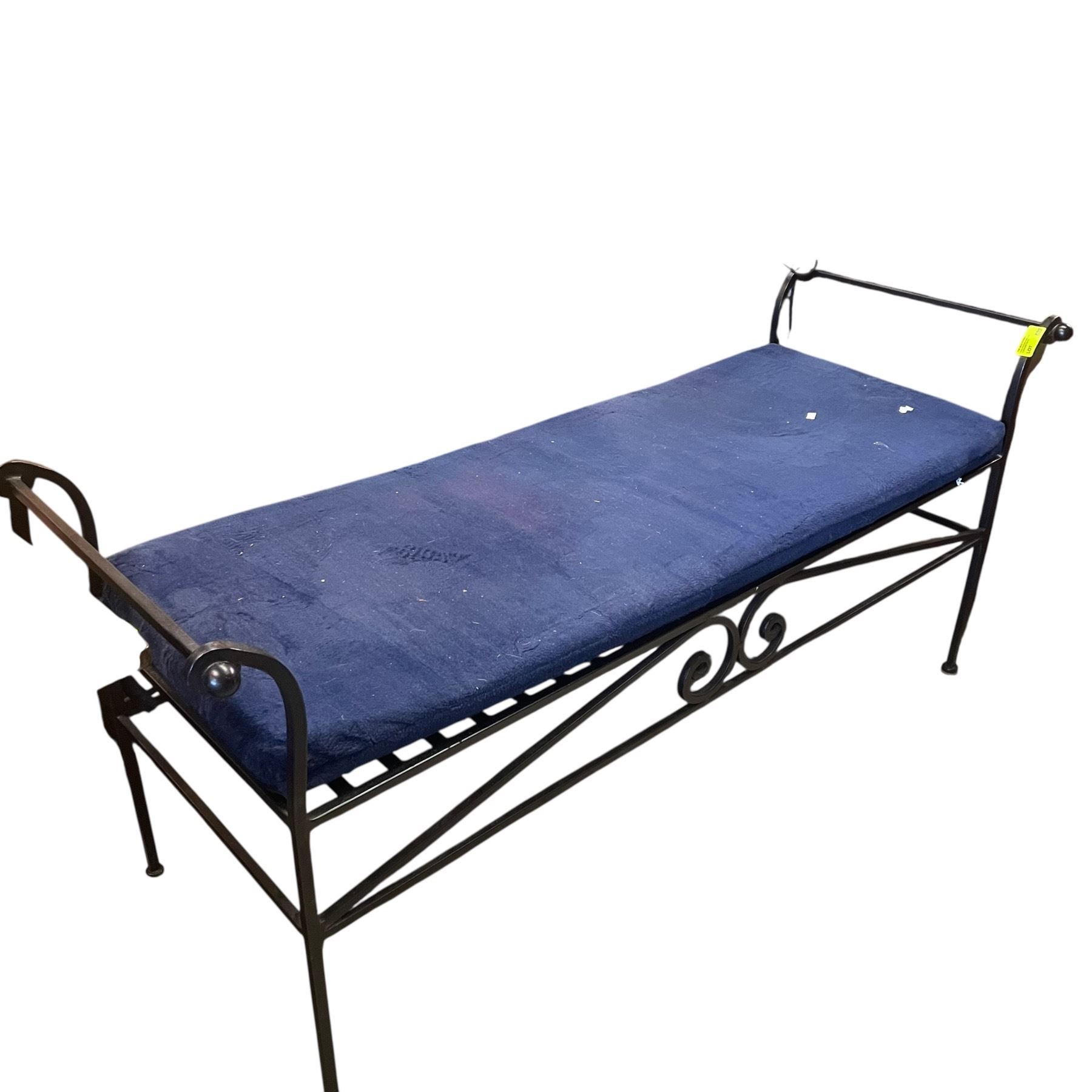 Lot 822 Wrought Iron Scroll Arm Bench with Navy Bench Pad (48" long)