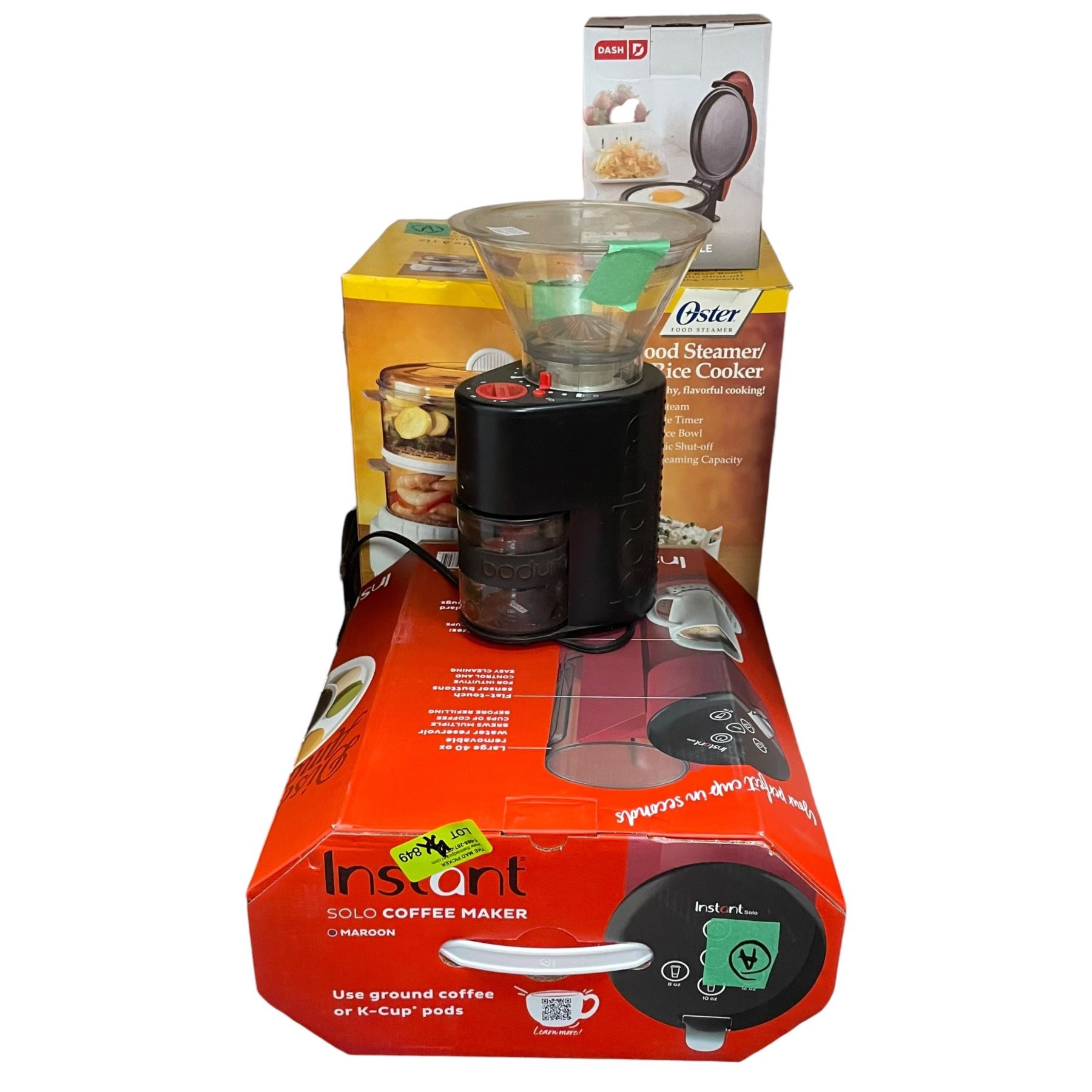 Lot 849 Coffee Maker, Coffee Grinder, Food Steamer and Mini Maker Griddle
