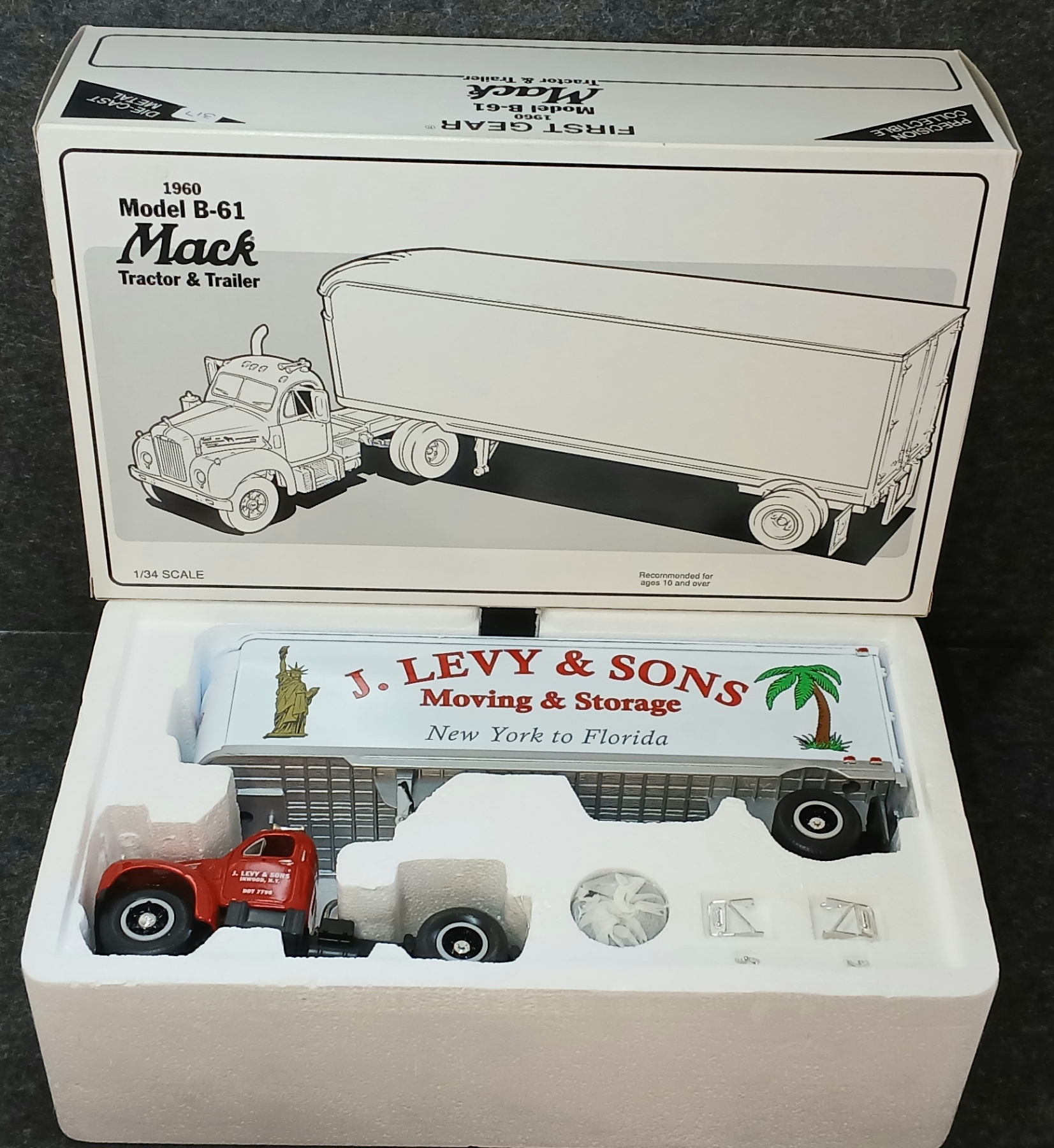 Lot 1665 FIRST GEAR 1960 MACK B-61 TRACTOR & TRAILER DIECAST MODEL