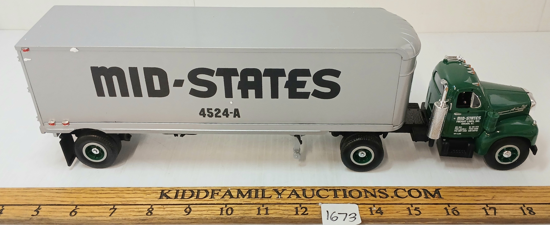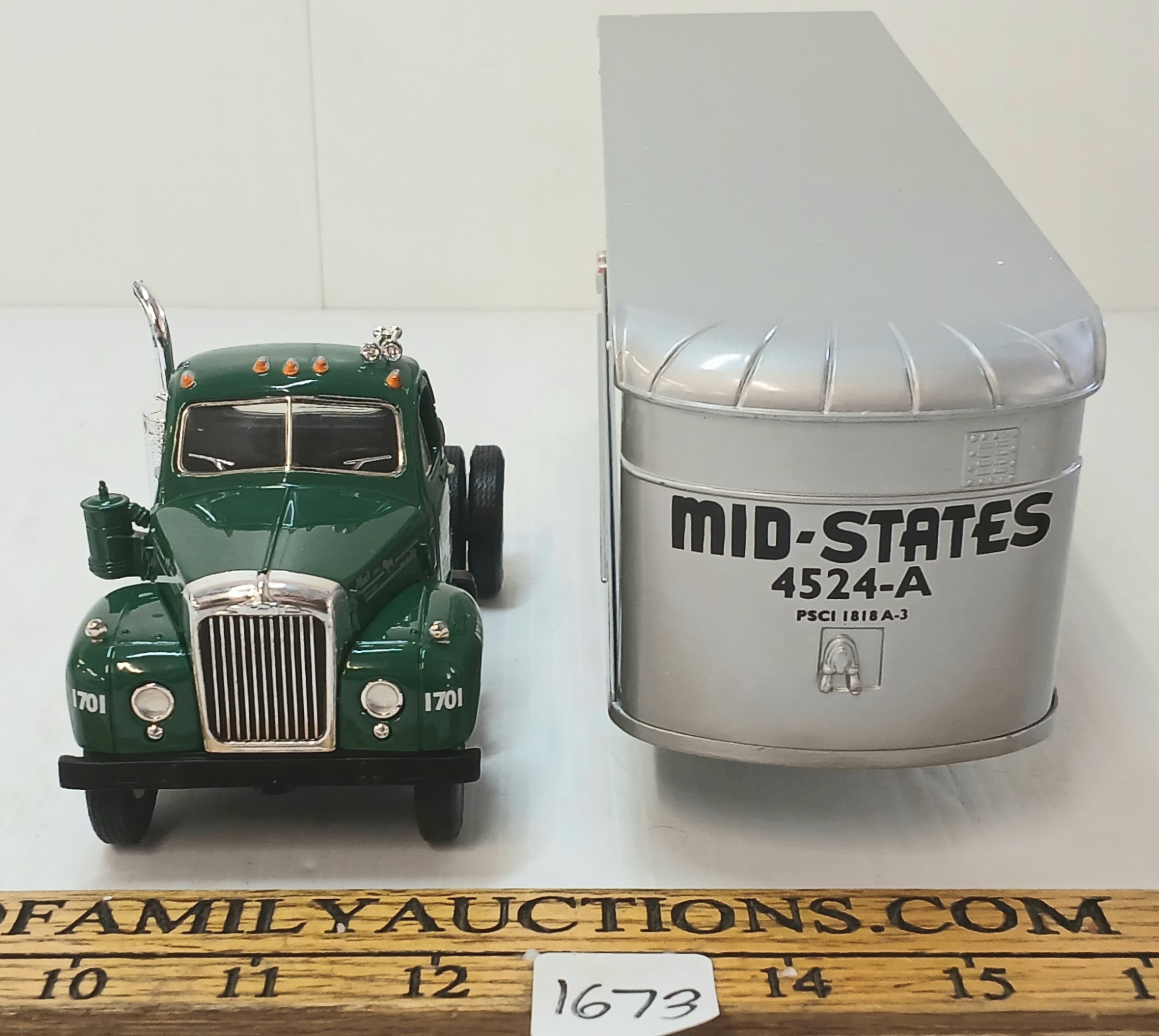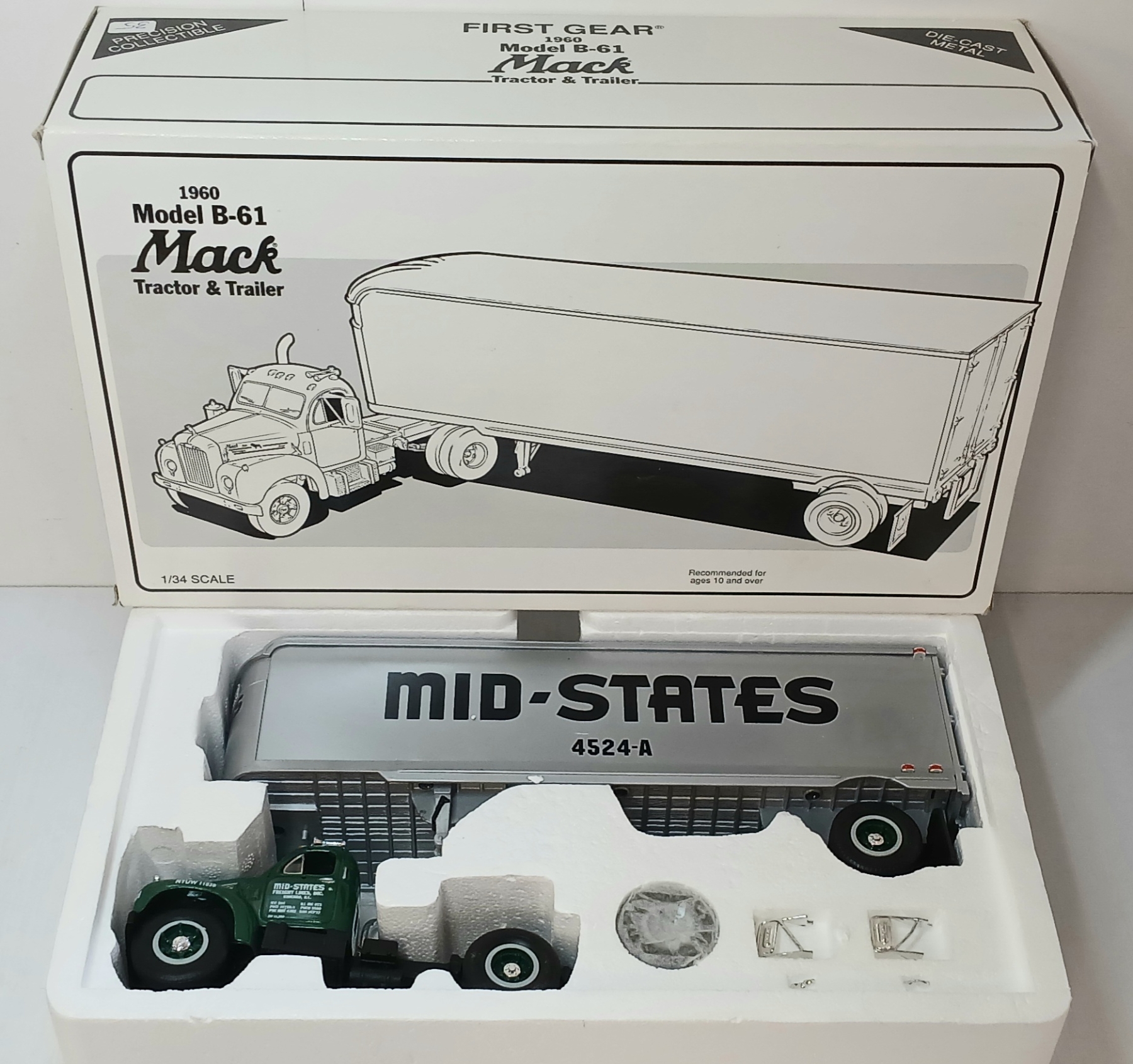 Lot 1673 FIRST GEAR 1960 MACK B-61 TRACTOR & TRAILER DIECAST MODEL