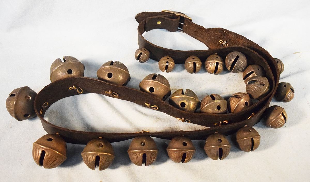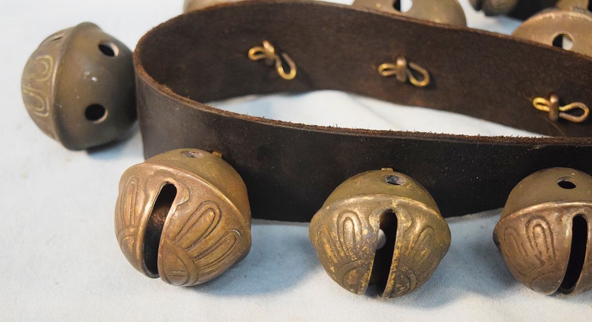 Large set of brass sleigh bells, 60" long