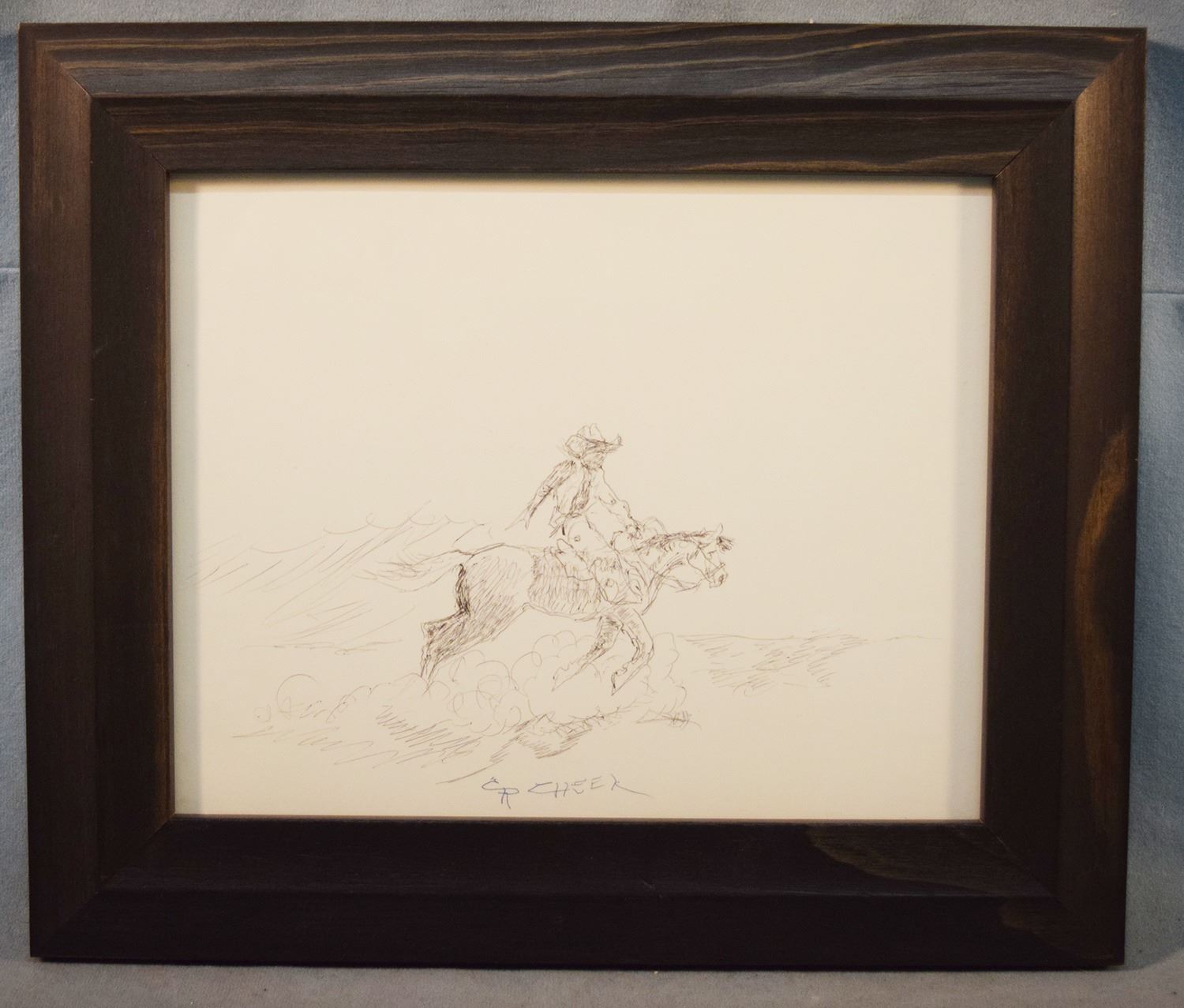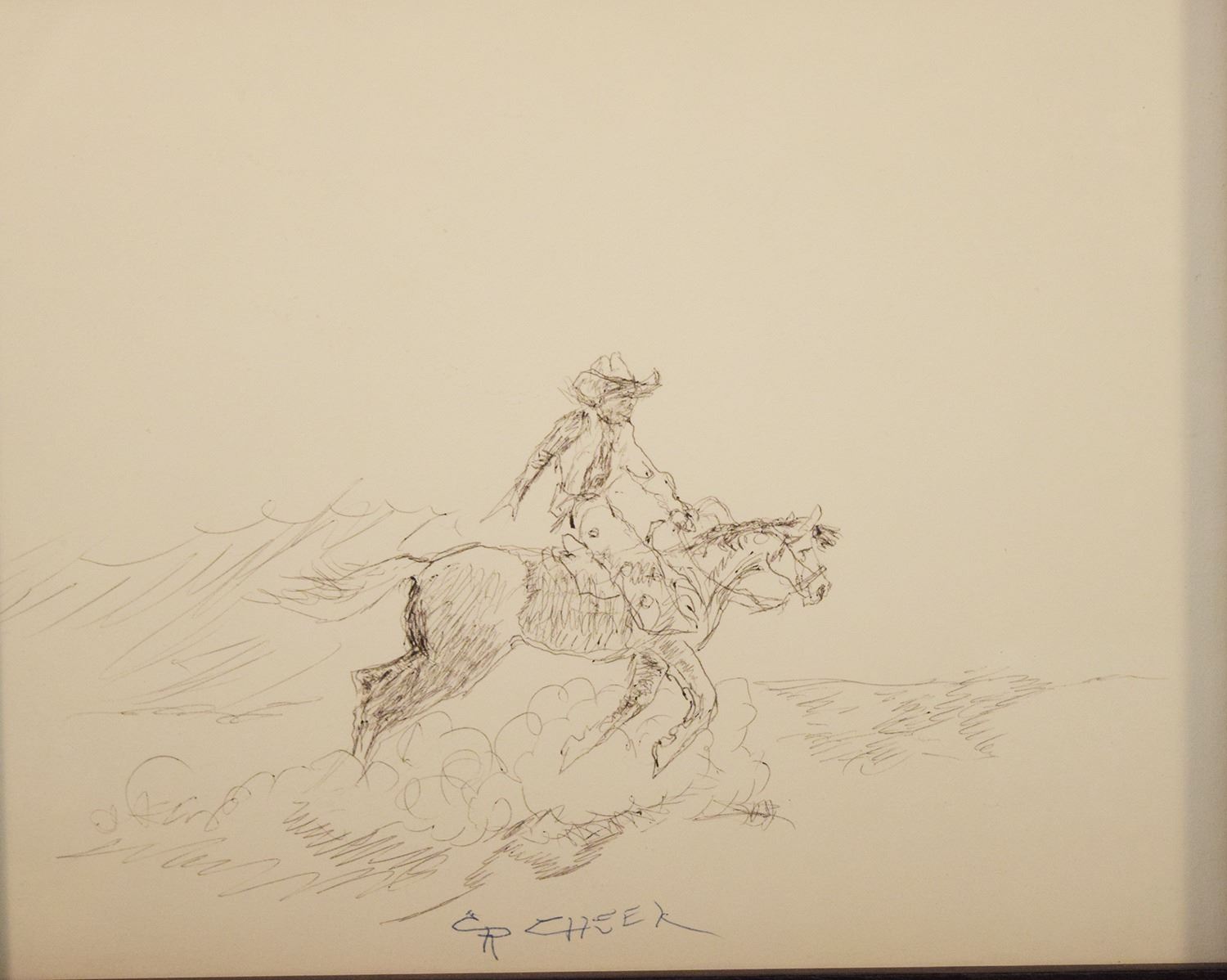Cheek, C. R., original pen & ink, Horse & Rider, 7.5" x 9.5", framed, signed lower middle